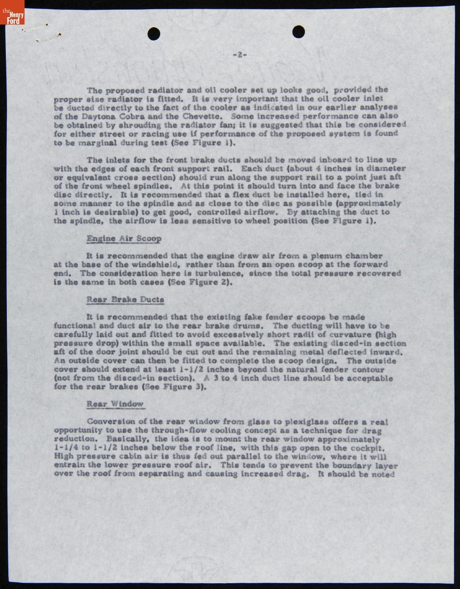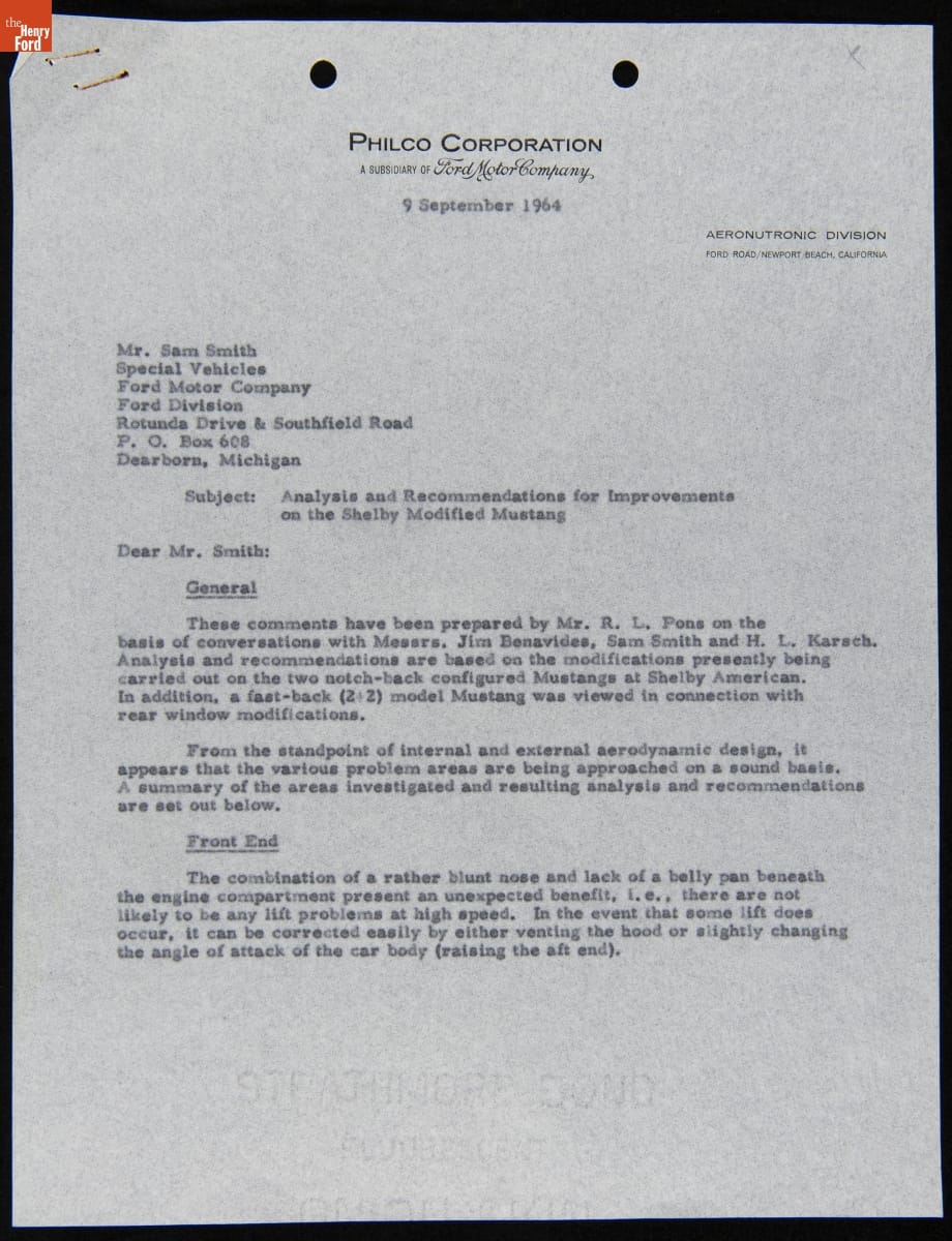 Analysis and Recommendations for Improvements on the Shelby Modified Mustang, September 1964