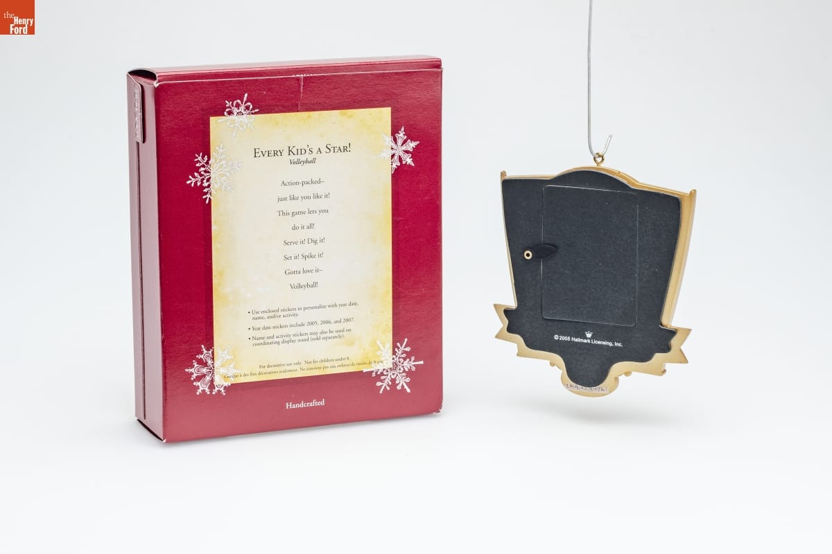 EVERY KID'S A STAR! / Volleyball / Action-packed-- / just like you like it! / This game lets you / do it all! / Serve it! Dig it! / Set it! Spike it! / Gotta love it-- / Volleyball! / Use enclosed stickers to personalize with year date, / name, and/or activity. / Year date stickers include 2005, 2006, and 2007. / Name and activity stickers may also be used on / coordinating display stand (sold separately). / For decorative use only. Not for children under 8. / Concue a des fins decoratives seulement. / Ne convient pas aux enfants de moins de 8 ans. / Handcrafted