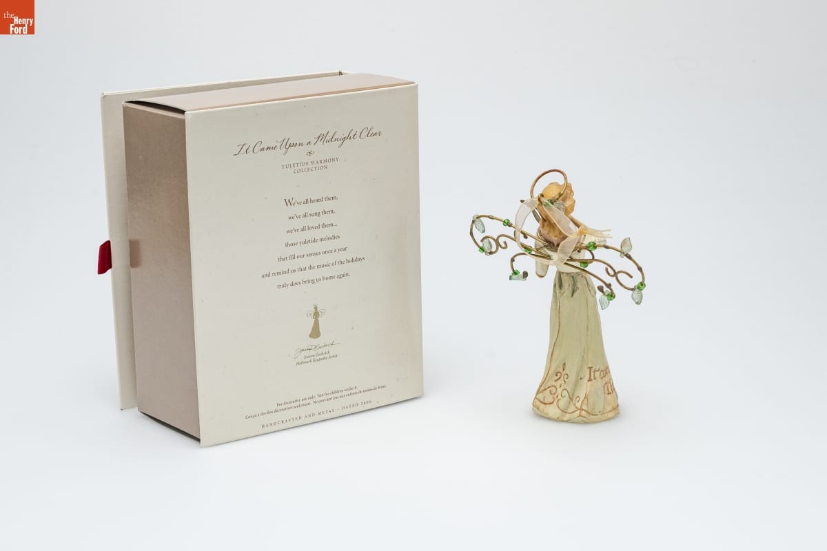 It Came Upon a Midnight Clear / Yuletide Harmony / We've all heard them, / we've all sung them, / we've all loved them... / those yuletide melodies / that fill our senses once a year / and remind us that the music of the holidays / truly does bring us home again. / Joanne Eschrich / Hallmark Keepsake Artist / For decorative use only. Not for children under 8. / Concu a des fins decoratives seulement. Ne convient pas aux enfants de moins de 8 ans. / HANDCRAFTED AND METAL - DATED 2006