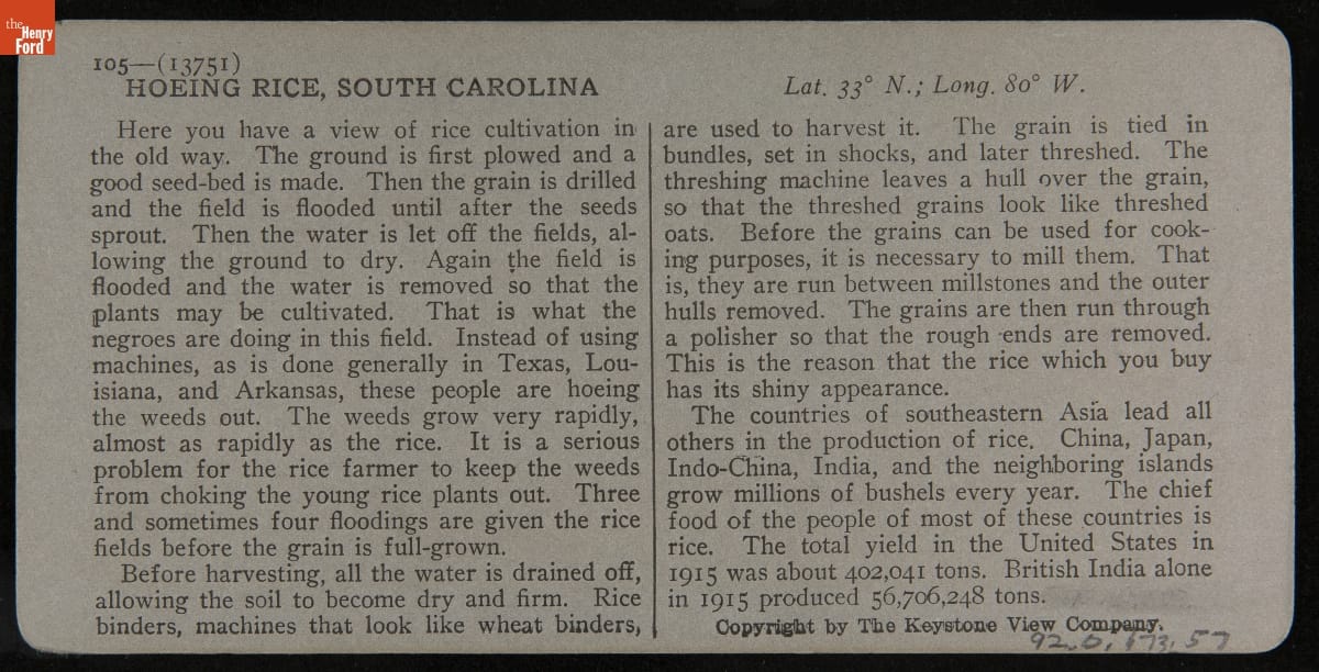 on bottom, right: 13751 - Hoeing Rice, South Carolina, U.S.A.