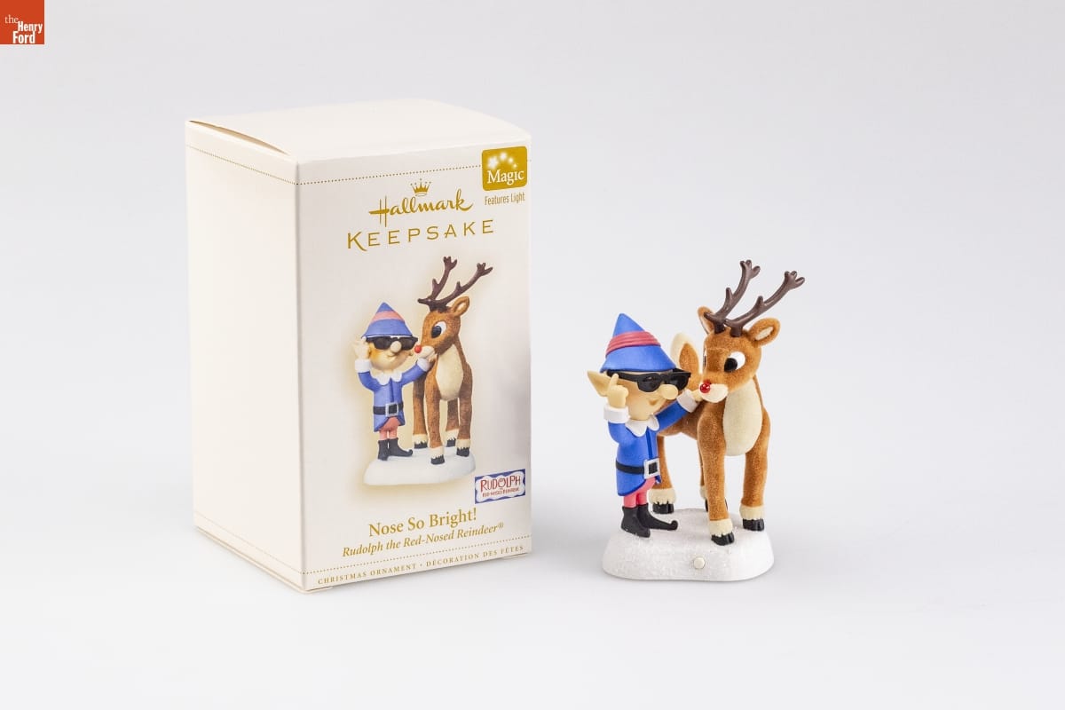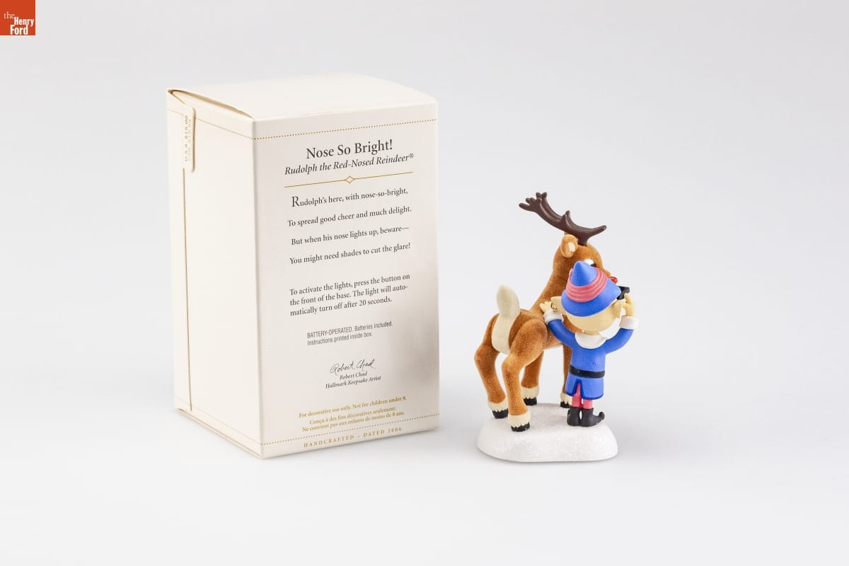 Rudolph the Red-Nosed Reindeer (C) & (R) The Rudolph Co., / L.P. "Rudolph the Red-Nosed Reindeer" animated program / (C) Classic Media, Inc. All rights reserved. / Mfd. for/Fabrique pour Hallmark Cards, Inc., Kansas City, MO 64141 / Made in China QXG2756