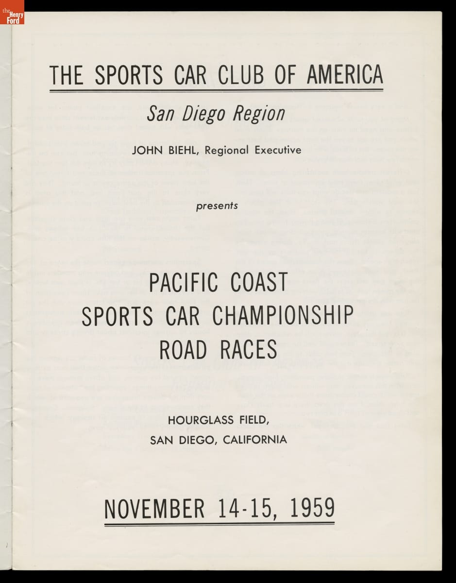 Program, Pacific Coast Championship Races, Hourglass Field, San Diego, California, November 1959