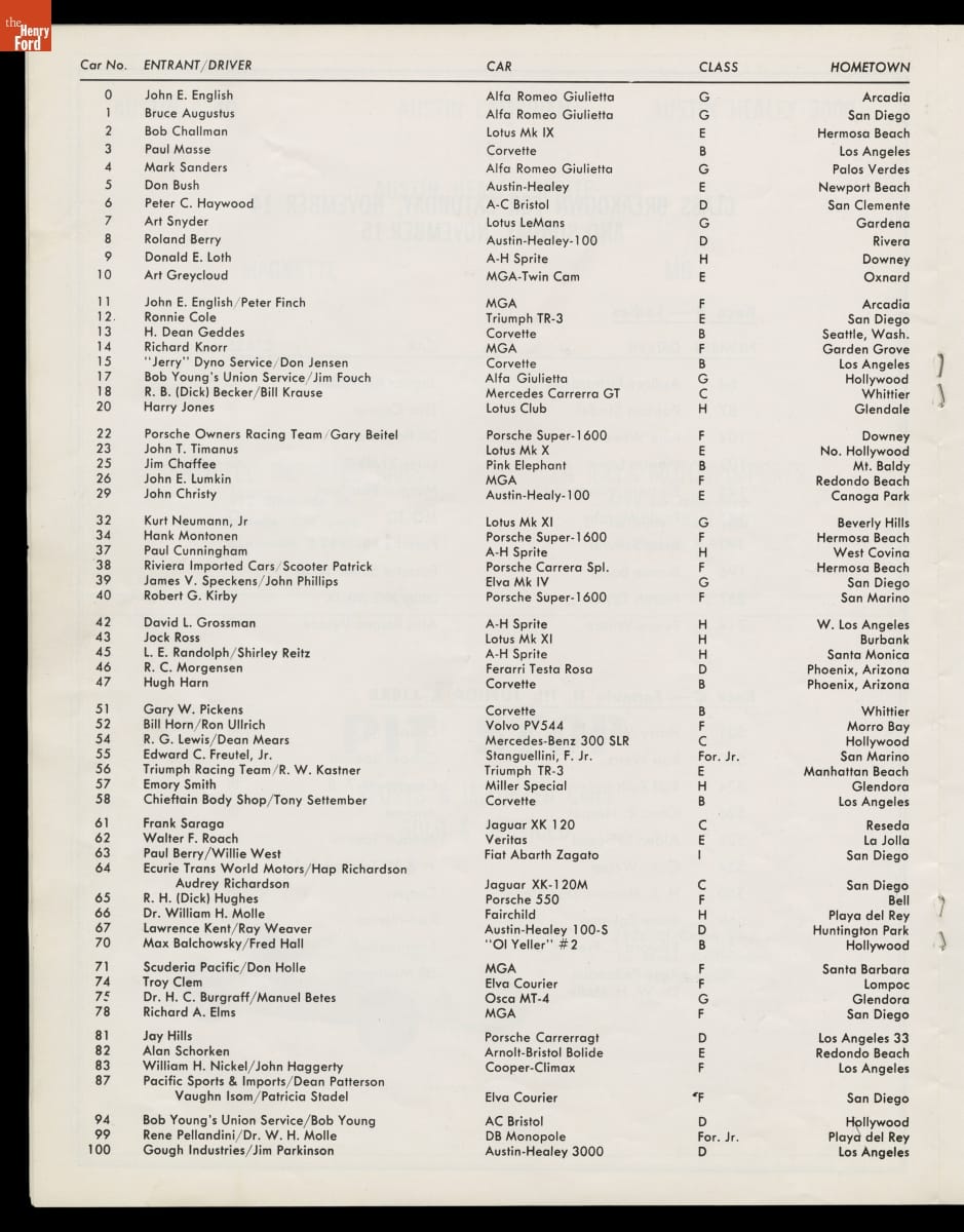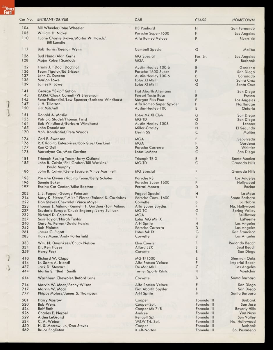 Dave Friedman captured and preserved auto racing history through his photography and memorabilia. His collection of event programs documents key races, cars, drivers, and teams. This program is from a series of sports car races at Hourglass Field near San Diego, California, in November 1959. The field had been a supplementary landing site for U.S. Navy aircraft stationed in the area.