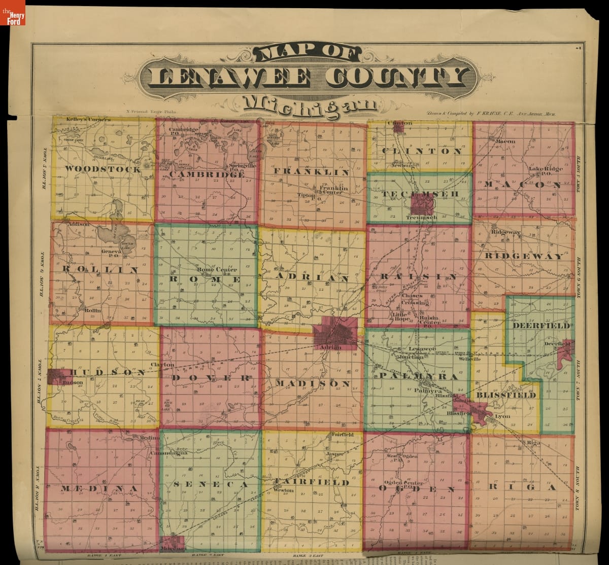 Combination Atlas Map of Lenawee County, Michigan, 1874