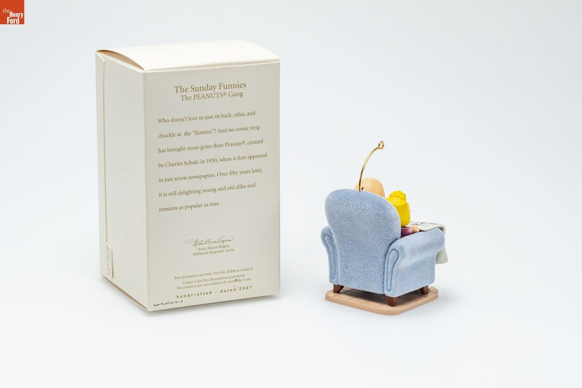The Sunday Funnies / The PEANUTS [R] Gang / Who doesn't love to just sit back, relax, and / chuckle at the "funnies"? And no comic strip / has brought more grins than Peanuts [R], created / by Charles Schulz in 1950, when it first appeared / in just seven newspapers. Over fifty years later, / it is still delighting young and old alike and / remains as popular as ever. / Anita Marra Rogers / Hallmark Keepsake Artist / For decorative use only. Not for children under 8. / Concu a des fins decoratives seulement. / Ne convient pas aux enfants de moins de 8 ans. / handcrafted - dated 2007