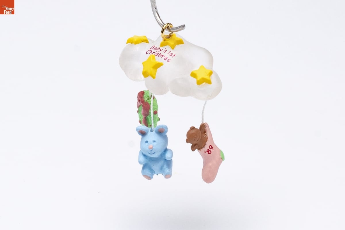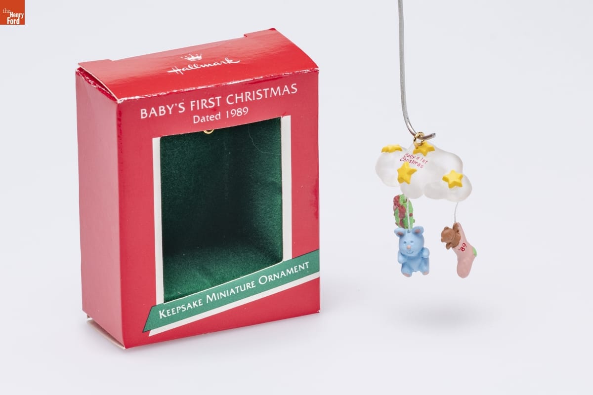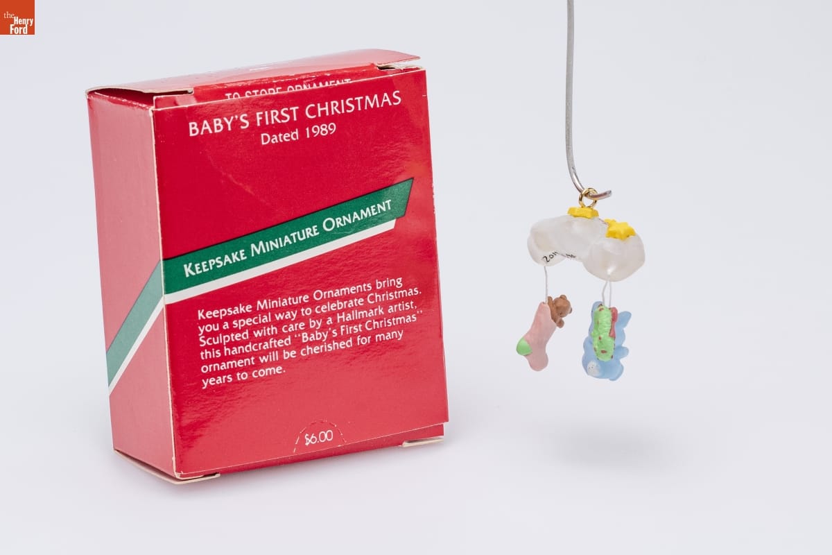 Already known for greeting cards, Hallmark introduced a line of Christmas ornaments in 1973. The company's annual release of an increasing array of ornaments appealed to customers' interest in marking memories and milestones as well as expressing one's personality and unique tastes. Purchasing an ornament like this one would bring back happy family memories of that event year after year.