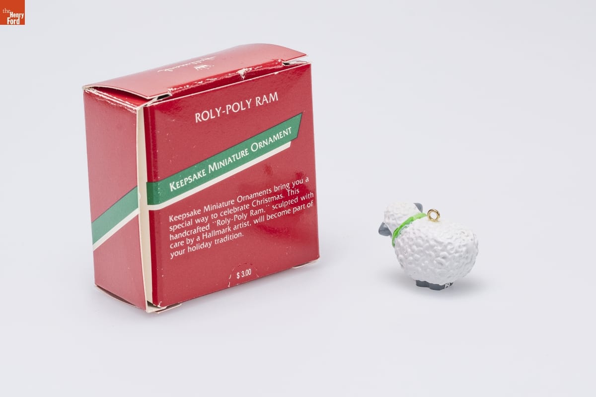 ROLY-POLY RAM / KEEPSAKE MINIATURE ORNAMENT / Keepaske Miniature Ornaments bring you a / special way to celebrate Christmas. This / handcrafted "Roly-Poly Ram," sculpted with / care by a Hallmark artist, will become part of / your holiday tradition.