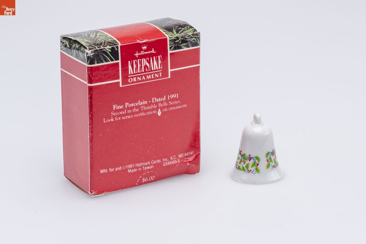 Hallmark / KEEPSAKE / ORNAMENT / Fine Porcelain - Dated 1991 / Second in the Thimble Bells Series. / Look for series verification 2 on ornament. / Mfd. for and (C) 1991 Hallmark Cards, Inc., K.C., MO 64141 / Made in Taiwan QXM565-9