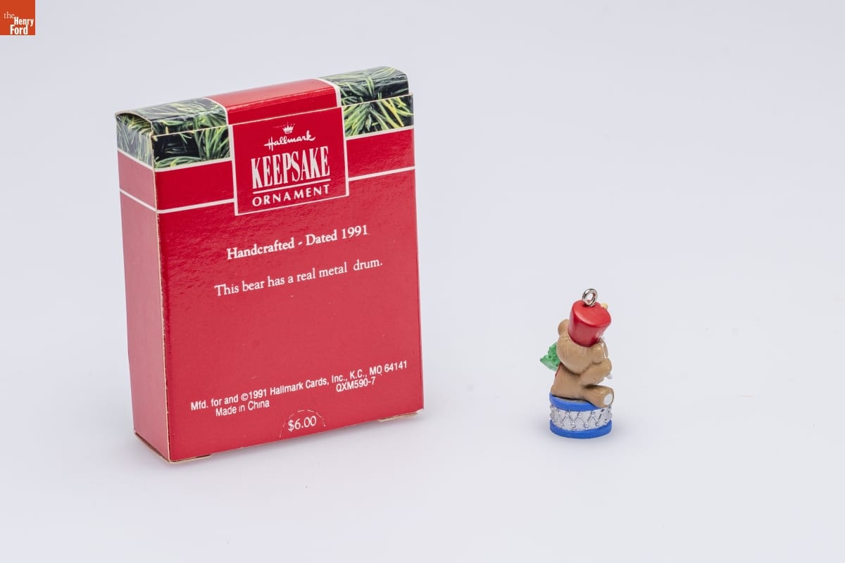 Hallmark / KEEPSAKE / ORNAMENT / Handcrafted - Dated 1991 / This bear has a real metal drum. / Mfd. for and (C) 1991 Hallmark Cards, Inc., K.C., MO 64141 / Made in China QXM590-7