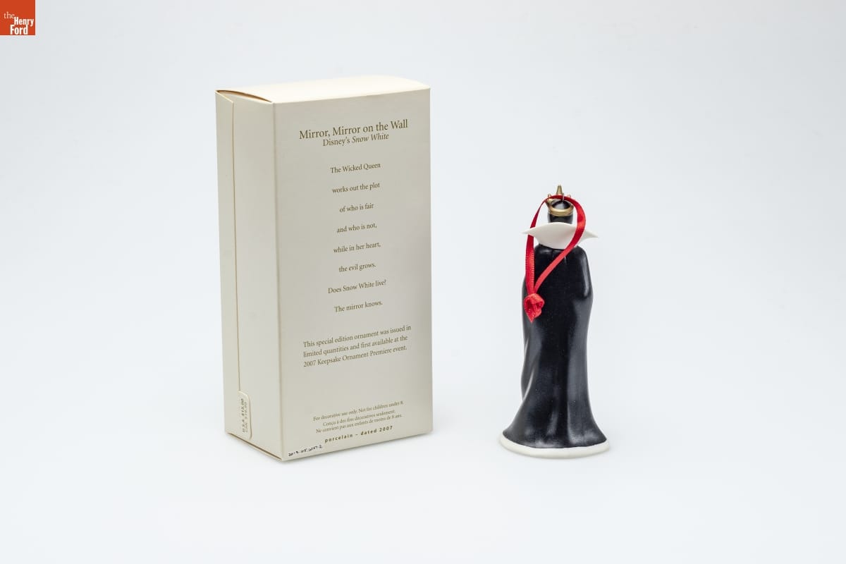 Mirror, Mirror on the Wall / Disney's Snow White / The Wicked Queen / works out the plot / of who is fair / and who is not, / while in her heart, / the evil grows. / Does Snow White live? / The mirror knows. / This special edition ornament was issued in / limited quantities and first available at the / 2007 Keepsake Ornament Premiere event. / For decorative use only. Not for children under 8. / Concu a des fins decoratives seulement. / Ne convient pas aux enfants de moins de 8 ans. / porcelain - dated 2007