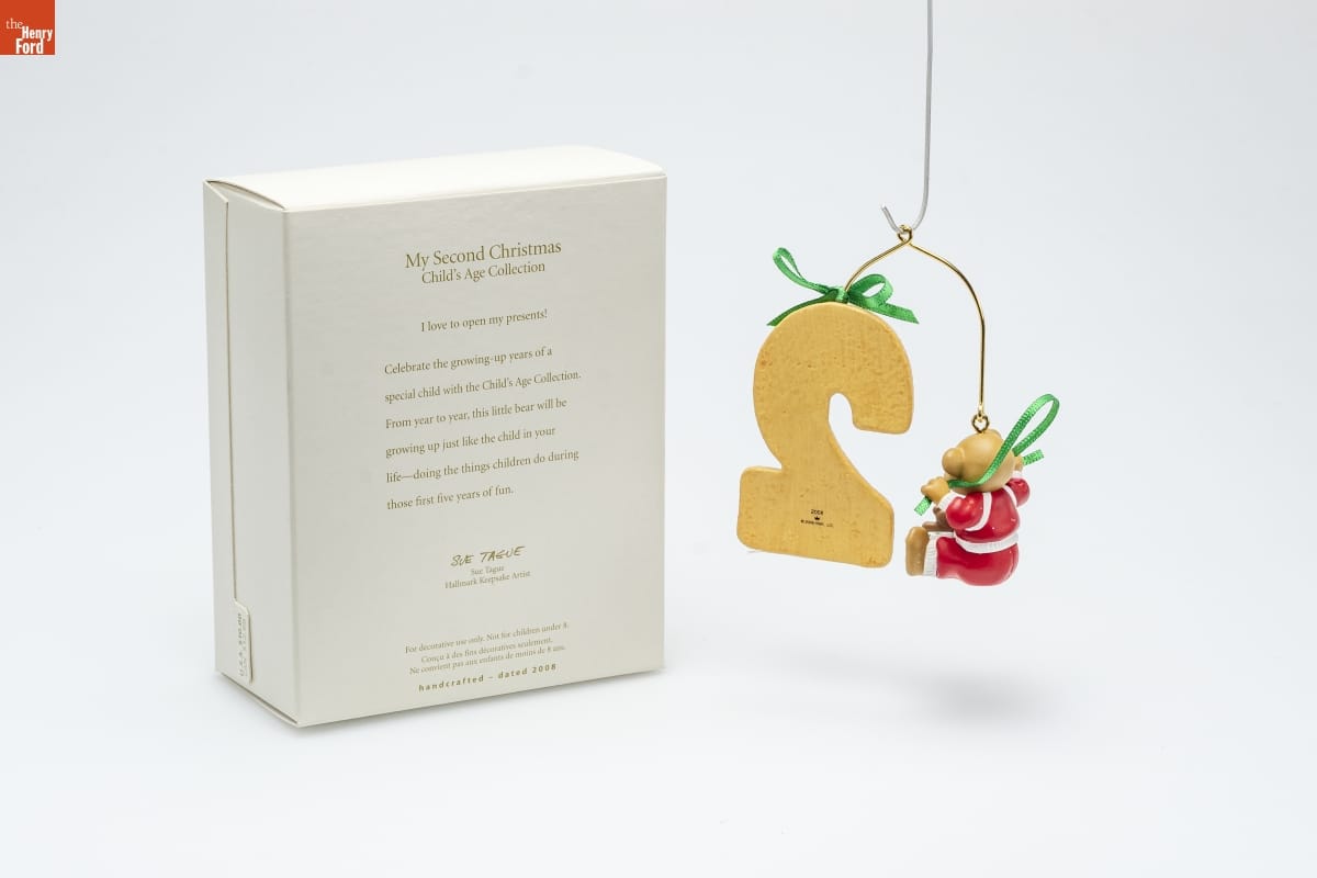 My Second Christmas / Child's Age Collection / I love to open my presents! / Celebrate the growing-up years of a / special child with the Child's Age Collection. / From year to year, this little bear will be / growing up just like the child in your / life--doing the things children do during / those first five years of fun. / Sue Tague / Hallmark Keepsake Artist / For decorative use only. Not for children under 8. / Concu a des fins decoratives seulement. / Ne convient pas aux enfants de moins de 8 ans. / handcrafted - dated 2008