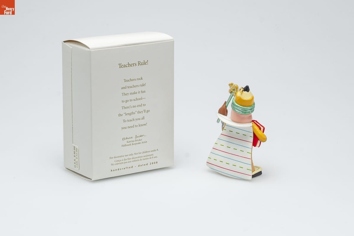 Teachers Rule! / Teachers rock / and teachers rule! / They make it fun / to go to school-- / There's no end to / the "lengths" they'll go / To teach you all / you need to know! / Katrina Bricker / Hallmark Keepsake Artist / For decorative use only. Not for children under 8. / Concu a des fins decoratives seulement. / Ne convient pas aux enfants de moins de 8 ans. / handcrafted - dated 2008