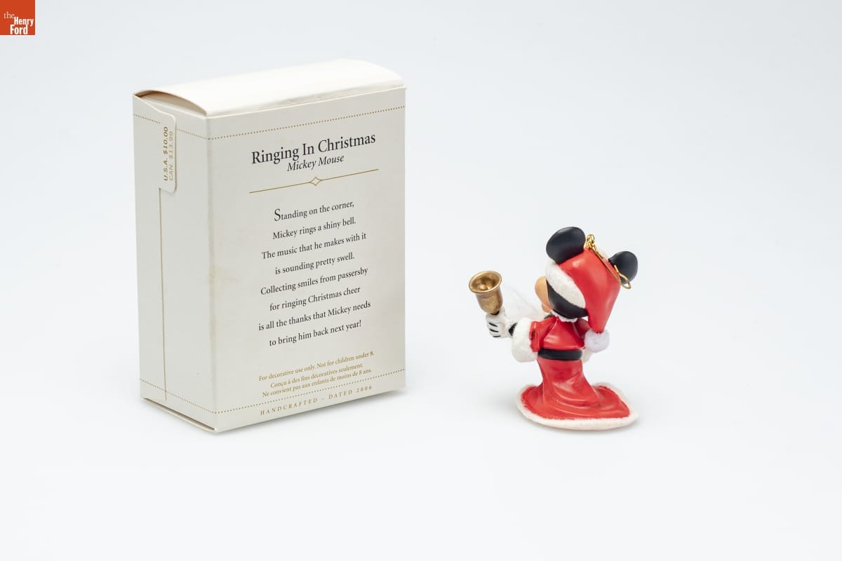 Ringing In Christmas / Mickey Mouse / Standing on the corner, / Mickey rings a shiny bell. / The music that he makes with it / is sounding pretty swell. / Collecting smiles from passersby / for ringing Christmas cheer / is all the thanks that Mickey needs / to bring him back next year! / For decorative use only. Not for children under 8. / Concu a des fins decoratives seulement. / Ne convient pas aux enfants de moins de 8 ans. / HANDCRAFTED - DATED 2006