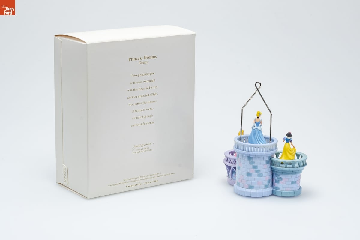 Princess Dreams / Disney / Three princesses gaze / at the stars every night / with their hearts full of love / and their smiles full of light. / How perfect this moment / of happiness seems, / enchanted by magic / and beautiful dreams. / Joanne Eschrich / Hallmark Keepsake Artist / For decorative use only. Not for children under 8. / Concu a des fin decoratives seulement. Ne convient pas aux enfants de moins de 8 ans. / handcrafted - dated 2008