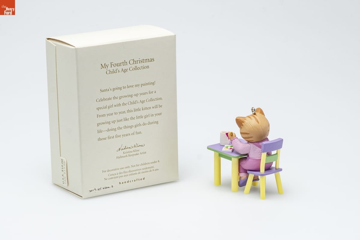 My Fourth Christmas / Child's Age Collection / Santa's going to love my painting! / Celebrate the growing-up years for a / special girl with the Child's Age Collection. / From year to year, this little kitten will be / growing up just like the little girl in your / life--doing the things girls do during / those first five years of fun. / Kristina Kline / Hallmark Keepsake Artist / For decorative use only. Not for children under 8. / Concu a des fins decoratives seulement. / Ne convient pas aux enfants de moins de 8 ans. / handcrafted