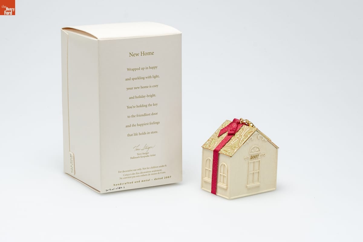 New Home / Wrapped up in a happy / and sparkling with light, / your new home is cozy / and holiday-bright. / You're holding the key / to the friendliest door / and the happiest feelings / that life holds in store. / Terri Steiger / Hallmark Keepsake Artist / For decorative use only. Not for children under 8. / Concu a des fins decoratives seulement. / Ne convient pas aux enfants de moins de 8 ans. / handcrafted and metal - dated 2007
