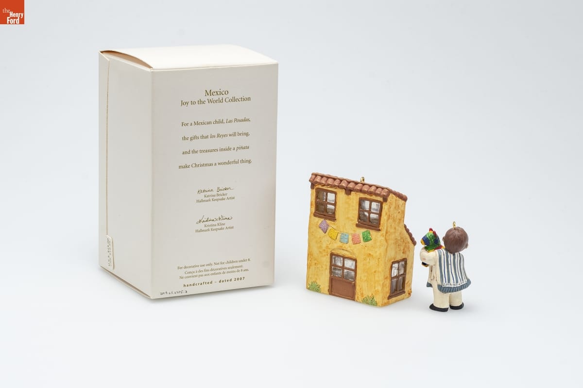 Mexico / Joy to the World Collection / For a Mexican child, Las Posadas, / the gifts that los Reyes will bring, / and the treasures inside a pinata / make Christmas a wonderful thing. / Katrina Bricker / Hallmark Keepsake Artist / Kristina Kline / Hallmark Keepsake Artist / For decorative use only. Not for children under 8. / Concu a des fins decoratives seulement. / Ne convient pas aux enfants de moins de 8 ans. / handcrafted - dated 2007