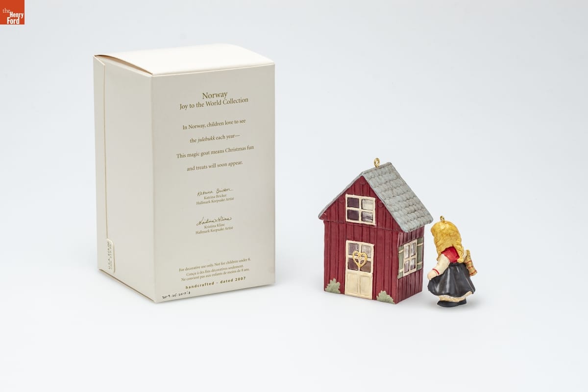 Norway / Joy to the World Collection / In Norway, children love to see / the julebukk each year-- / This magic goat means Christmas fun / and treats will soon appear. / Katrina Bricker / Hallmark Keepsake Artist / Kristina Kline / Hallmark Keepsake Artist / For decorative use only. Not for children under 8. / Concu a des fins decoratives seulement. / Ne convient pas aux enfants de moins de 8 ans. / handcrafted - dated 2007
