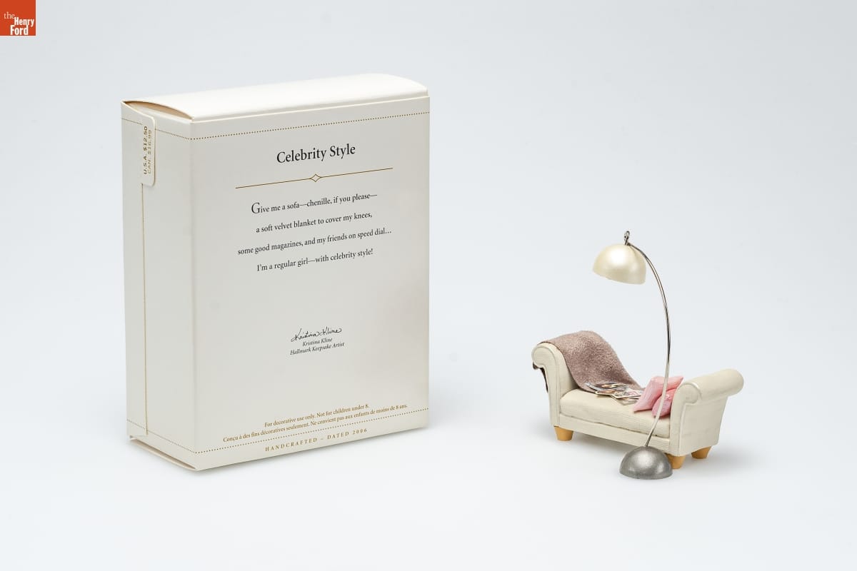 Celebrity Style / Give me a sofa--chenille, if you please-- / a soft velvet blanket to cover my knees, / some good magazines, and my friends on speed dial... / I'm a regular girl--with celebrity style! / Kristina Kline / Hallmark Keepsake Artist / For decorative use only. Not for children under 8. / Concu a des fins decoratives seulement. Ne convient pas aux enfants de moins de 8 ans. / HANDCRAFTED - DATED 2006
