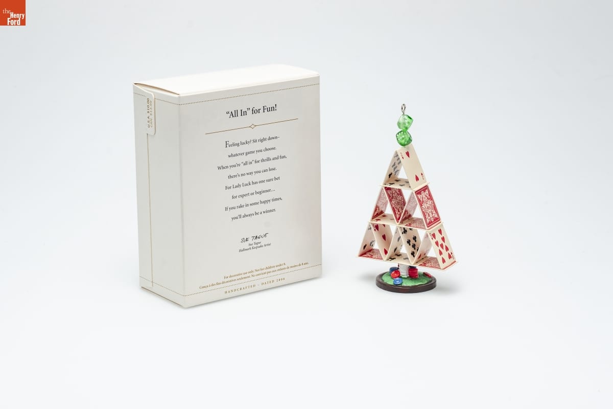"All In" for Fun! / Feeling lucky? Sit right down-- / whatever game you choose. / When you're "all in" for thrills and fun, / there's no way you can lose. / For Lady Luck has one sure bet / for expert or beginner... / If you rake in some happy times, / you'll always be a winner. / Sue Tague / Hallmark Keepsake Artist / For decorative use only. Not for children under 8. / Concu a des fins decoratives seulement. Ne convient pas aux enfants de moins de 8 ans. / HANDCRAFTED - DATED 2006