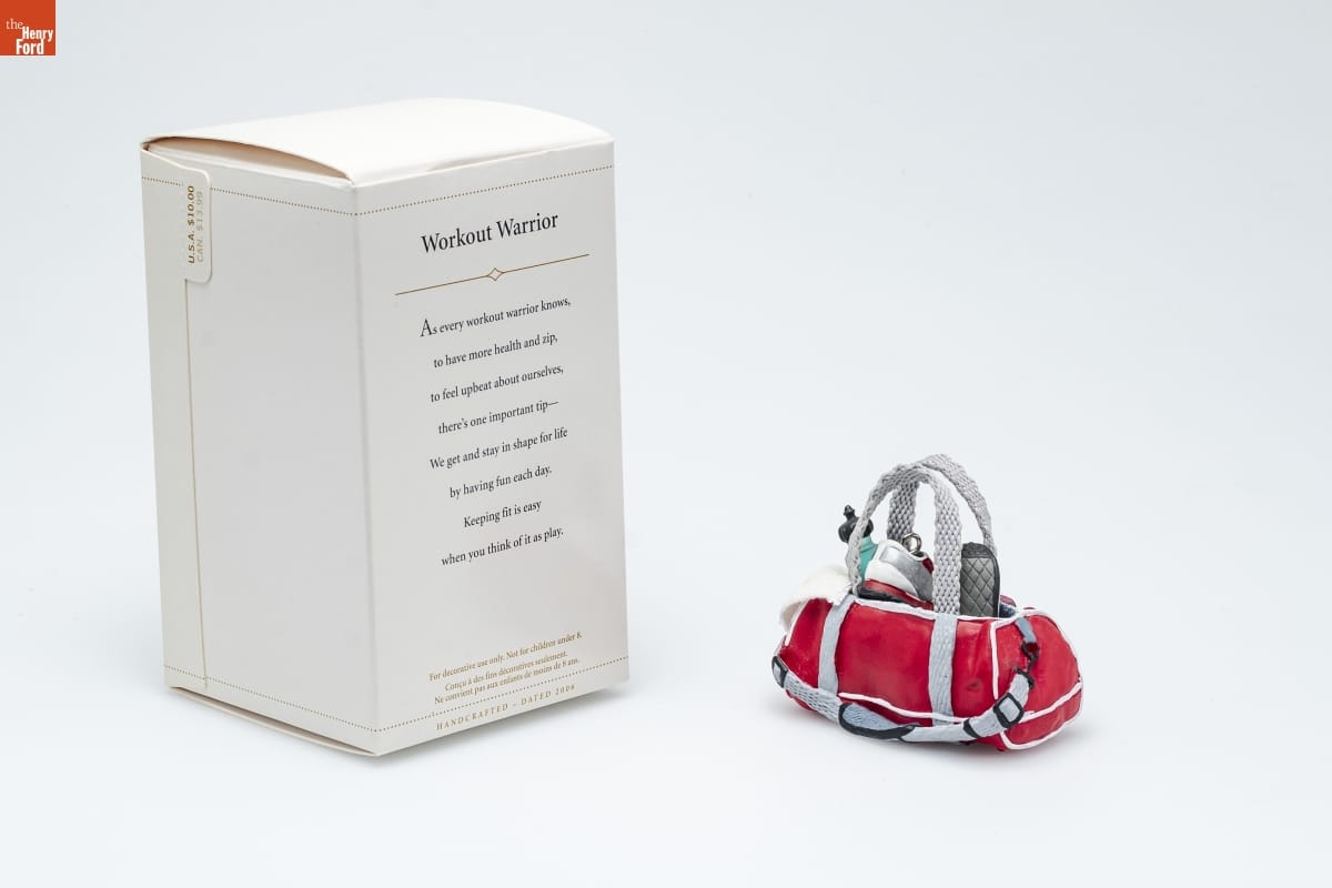Workout Warrior / As every workout warrior knows, / to have more health and zip, / to feel upbeat about ourselves, / there's one important tip-- / We get and stay in shape for life / by having fun each day. / Keeping fit is easy / when you think of it as play. / For decorative use only. Not for children under 8. / Concu a des fins decoratives seulement. Ne convient pas aux enfants de moins de 8 ans. / HANDCRAFTED - DATED 2006