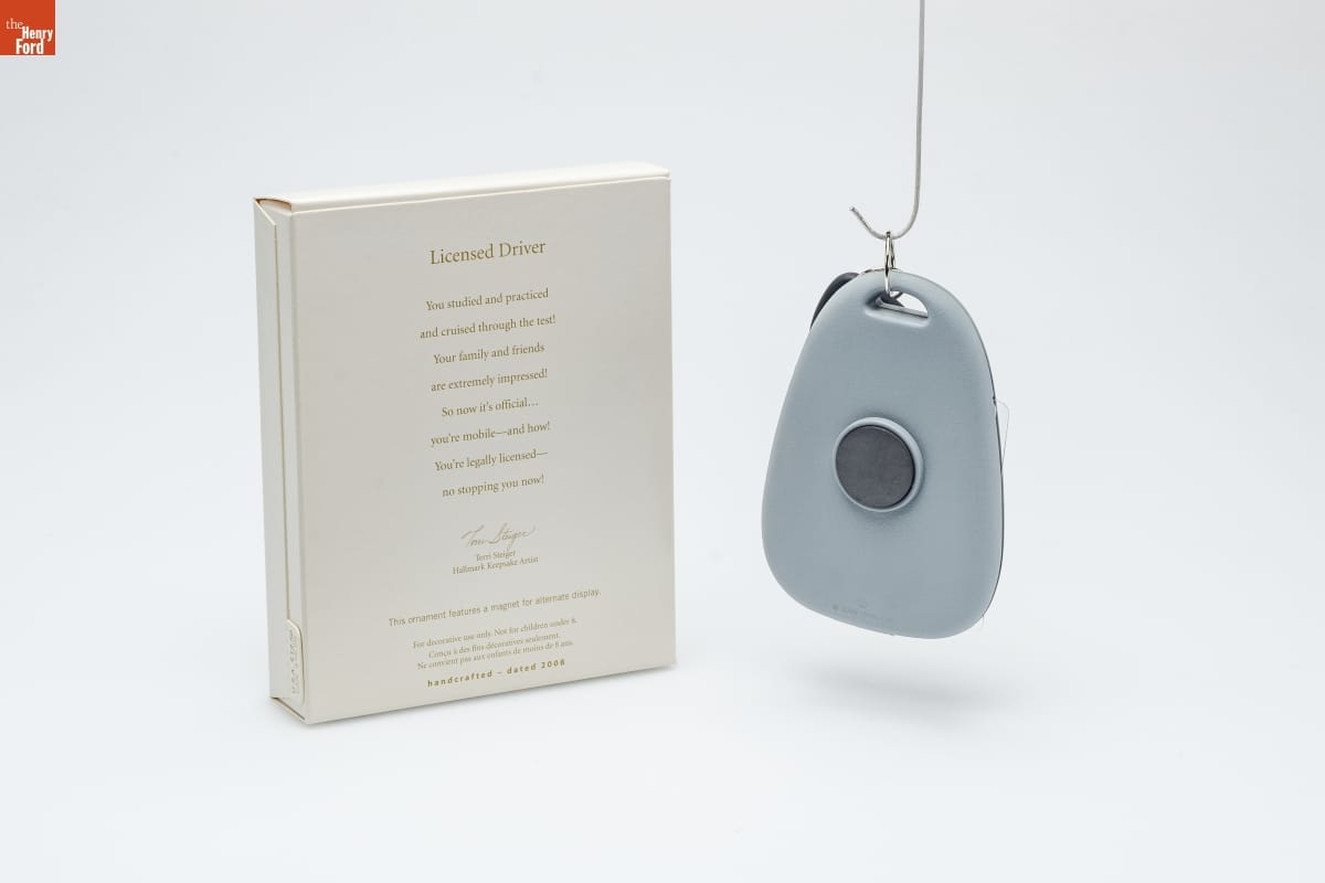 Licensed Driver / You studied and practiced / and cruised through the test! / Your family and friends / are extremely impressed! / So now it's official... / you're mobile--and how! / You're legally licensed-- / no stopping you now! / Terri Steiger / Hallmark Keepsake Artist / This ornament features a magnet for alternate display. / For decorative use only. Not for children under 8. / Concu a des fins decoratives seulement. / Ne convient pas aux enfants de moins de 8 ans. / handcrafted - dated 2008