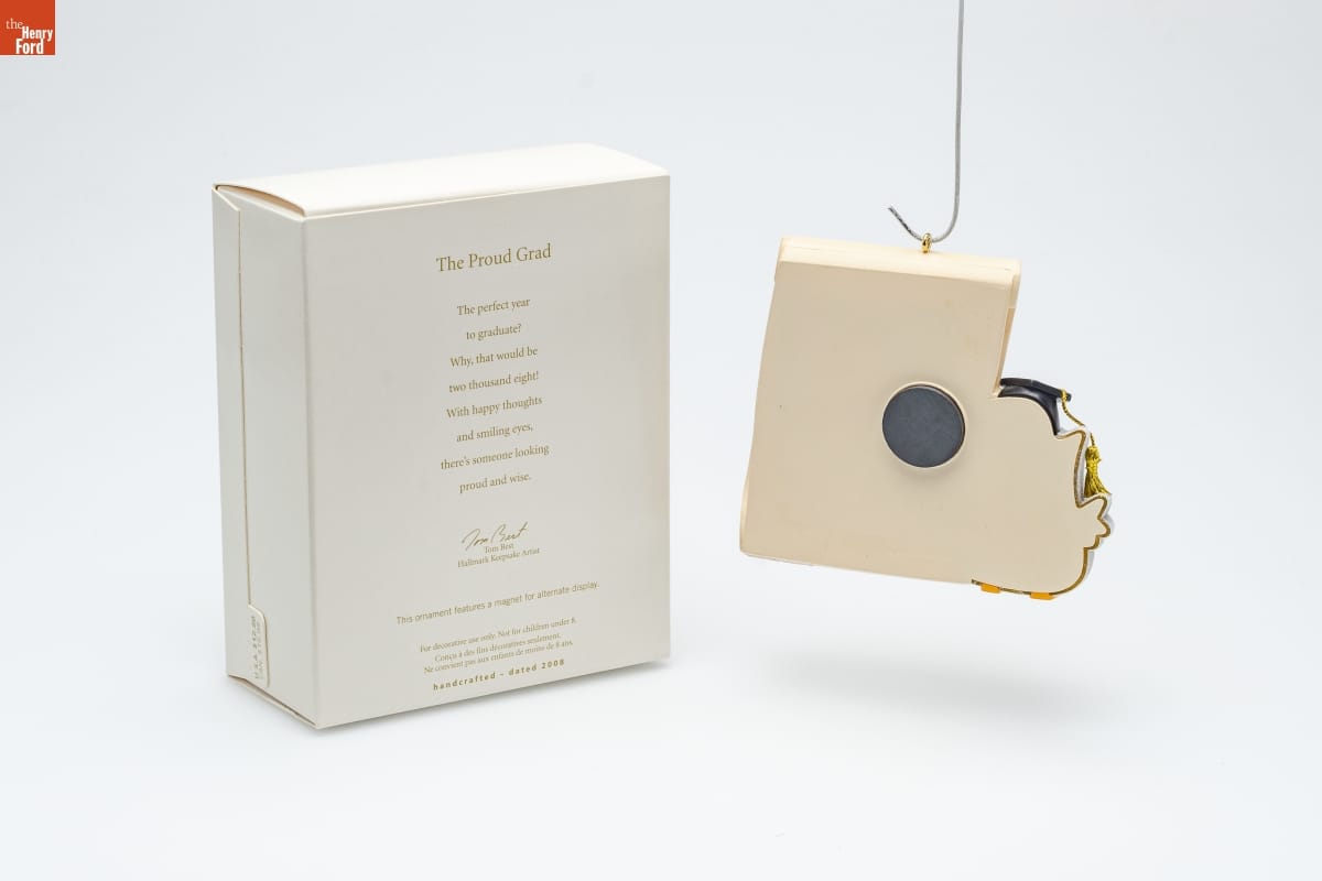 The Proud Grad / The perfect year / to graduate? / Why, that would be / two thousand eight! / With happy thoughts / and smiling eyes, / there's someone looking / proud and wise. / Tom Best / Hallmark Keepsake Artist / This ornament features a magnet for alternate display. / For decorative use only. Not for children under 8. / Concu a des fins decoratives seulement. / Ne convient pas aux enfants de moins de 8 ans. / handcrafted - dated 2008