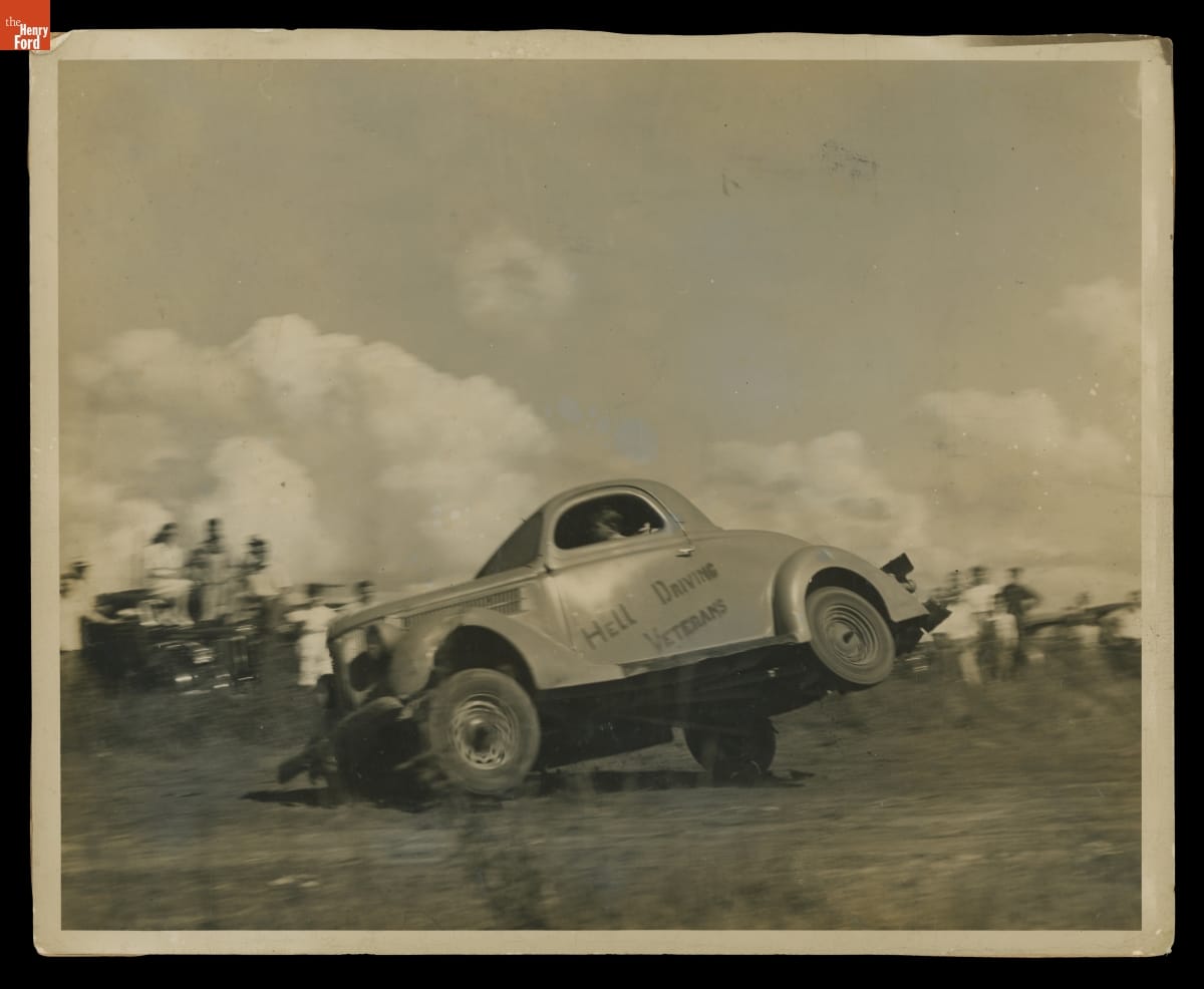 "Lucky" Lee Lott (1915-2000) performed circus acrobatics and high dives before he formed the Hell Drivers in 1935. Lott's team of stunt drivers toured North and South America jumping, flipping, or otherwise destroying thousands of cars, trucks, and motorcycles. Lott retired in 1955, keeping a promise to his mother that he would quit the risky business when he turned 40.