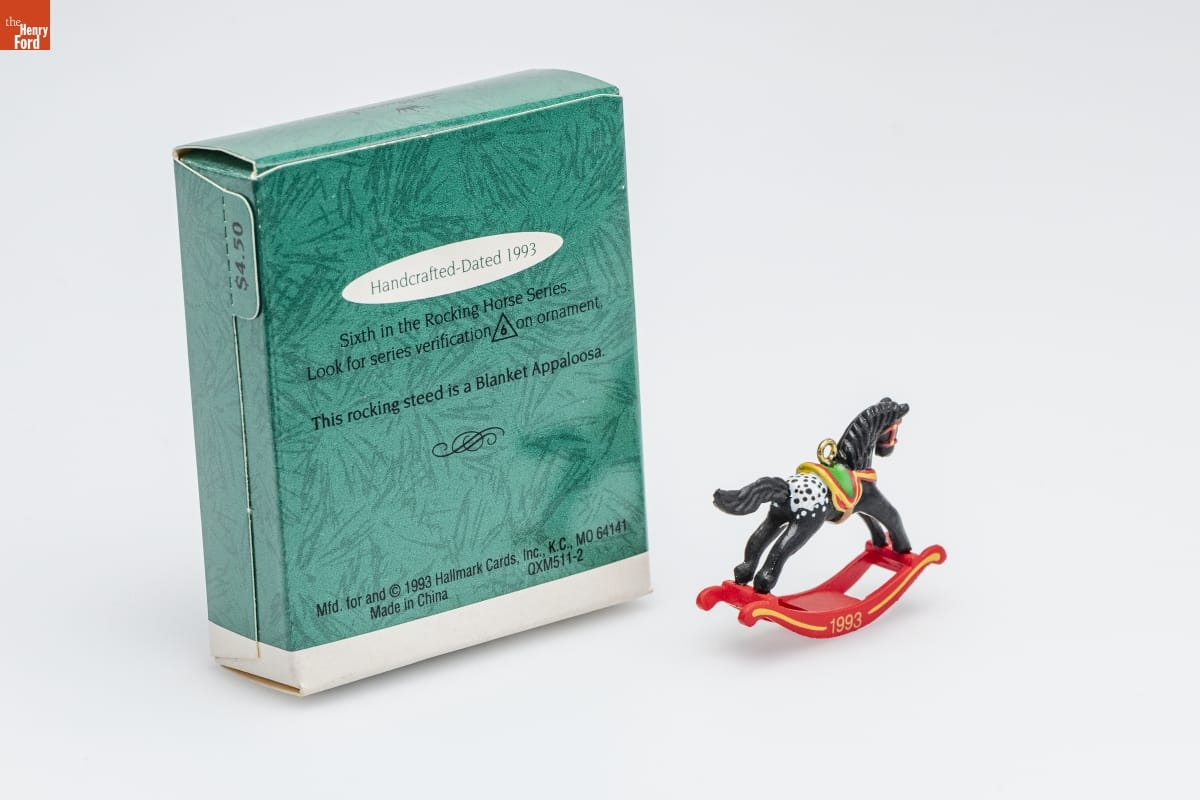 Handcrafted - Dated 1993 / Sixth in the Rocking Horse Series. / Look for series verification 6 on ornament. / This rocking steed is a Blanket Appaloosa. / Mfd. for and (C) 1993 Hallmark Cards, Inc., K.C., MO 64141 / Made in China QXM511-2