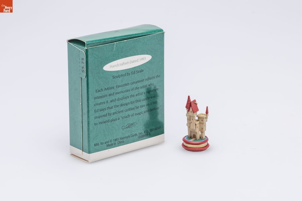Handcrafted - Dated 1993 / Sculpted by Ed Seale / Each Artists' Favorites ornament reflects the / interests and memories of the artist who / creates it, and displays the artist's signature. / Ed says that the design for this castle was inspired by ancient castles he saw on a trip / to Ireland plus a "touch of magic and fantasy." / Mfd. for and (C) 1993 Hallmark Cards, Inc., K.C., MO 64141 / Made in China QXM408-5