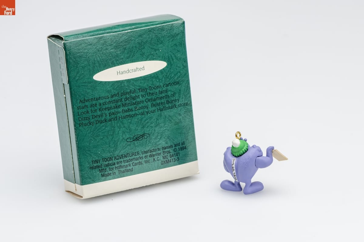 Handcrafted / Adventurous and playful, Tiny Toons cartoon / stars are a constant delight to their fans. / Look for Keepsake Miniature Ornaments of / Dizzy Devil's pals--Babs Bunny, Buster Bunny, / Plucky Duck, and Hamton--at your Hallmark store. / TINY TOON ADVENTURES, characters, names and all / related indicia are trademarks of Warner Bros. (C) 1994 / Mfd. for Hallmark Cards, Inc., K.C., MO 64141 / Made in Thailand QXM413-3