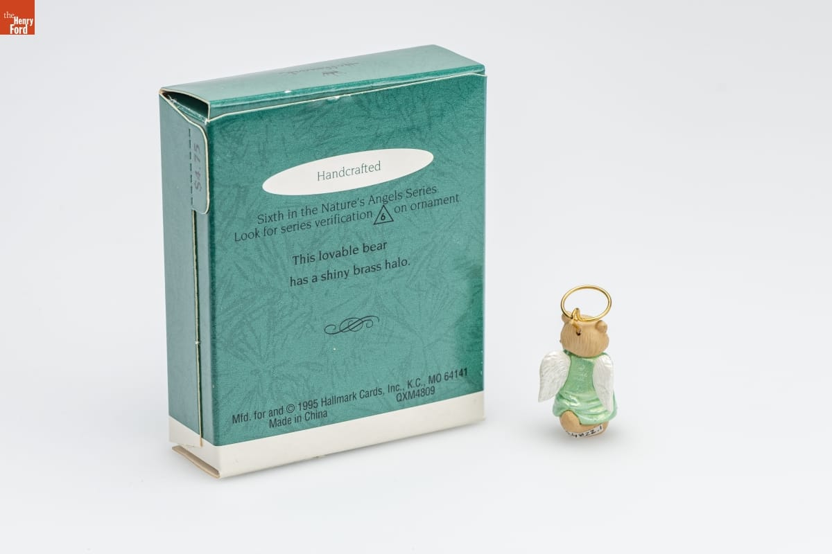 Handcrafted / Sixth in the Nature's Angels Series. / Look for series verification 6 on ornament. / This lovable bear / has a shiny brass halo. / Mfd. for and (C) 1995 Hallmark Cards, Inc., K.C., MO 64141 / Made in China QXM4809