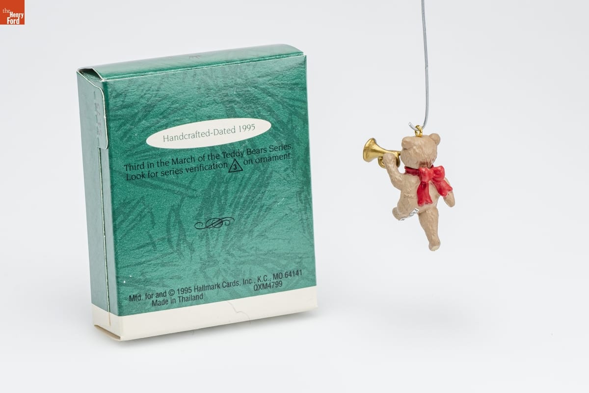 Handcrafted - Dated 1995 / Third in the March of the Teddy Bears Series. / Look for series verification 3 on ornament. / Mfd. for and (C) 1995 Hallmark Cards, Inc., K.C., MO 64141 / Made in Thailand QXM4799
