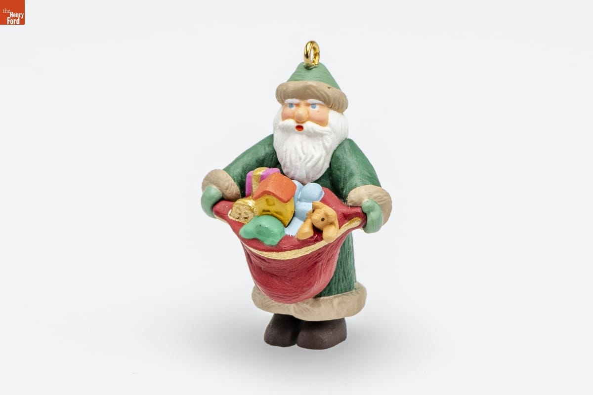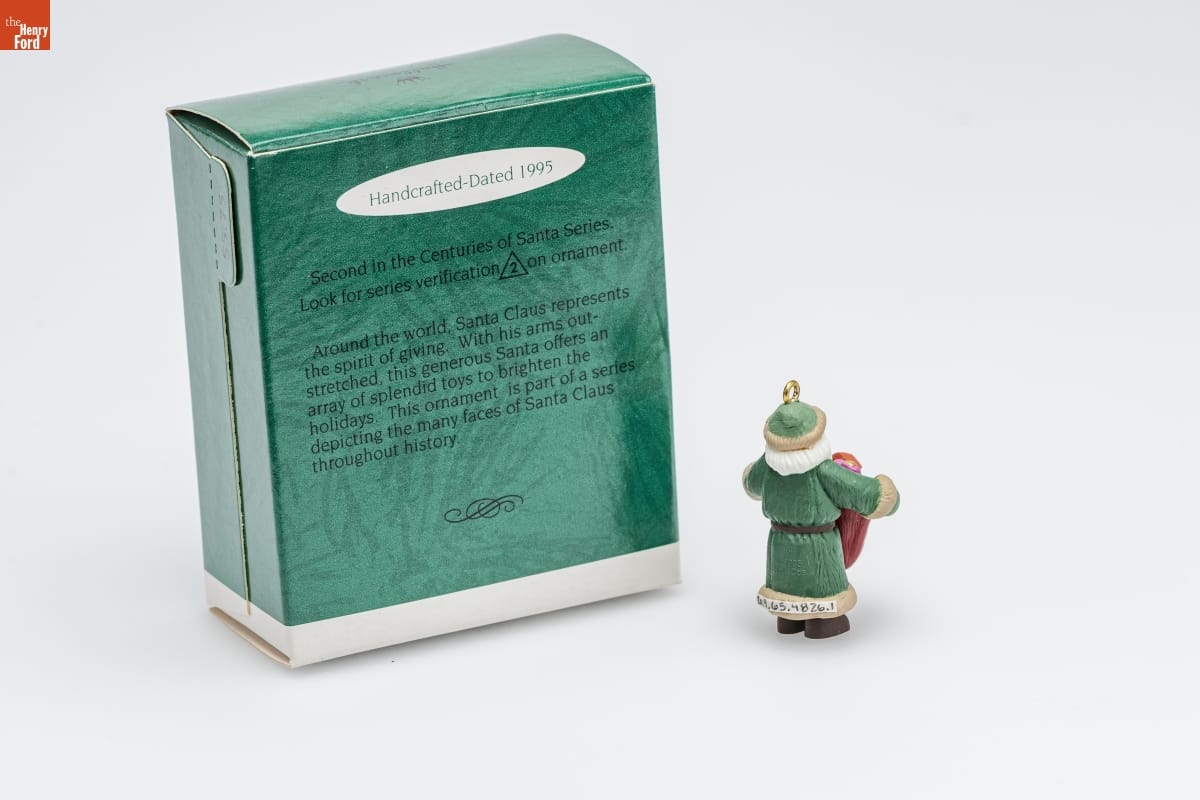 Handcrafted - Dated 1995 / Second in the Centuries of Santa Series. / Look for series verification 2 on ornament. / Around the world, Santa Claus represents / the spirit of giving. With his arms out- / stretched, this generous Santa offers an / array of splendid toys to brighten the / holidays. This ornament is part of a series / depicting the many faces of Santa Claus / throughout history.
