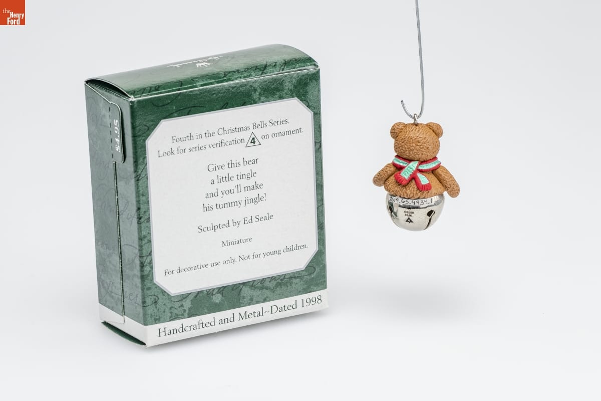 Fourth in the Christmas Bells Series. / Look for series verification 4 on ornament. / Give this bear / a little tingle / and you'll make / his tummy jingle! / Sculpted by Ed Seale / Miniature / For decorative use only. Not for young children. / Handcrafted and Metal - Dated 1998