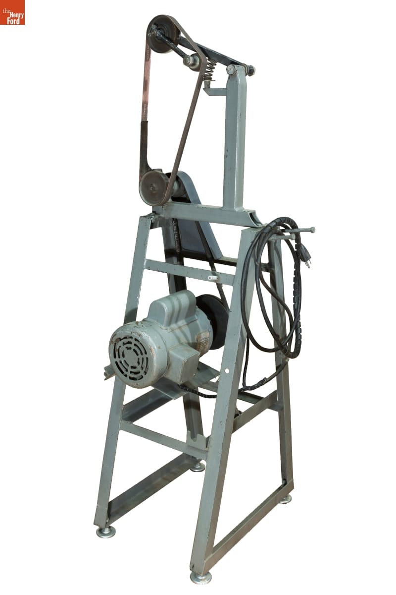 Phil Remington was one of racing's greatest fabricators and metalworkers. He worked alongside innovators like Lance Reventlow, Carroll Shelby, and Dan Gurney throughout his 70-year career. Always resourceful, "Rem" often made his own tools suited to the job at hand. He made this belt sander using parts from an old lawn mower.