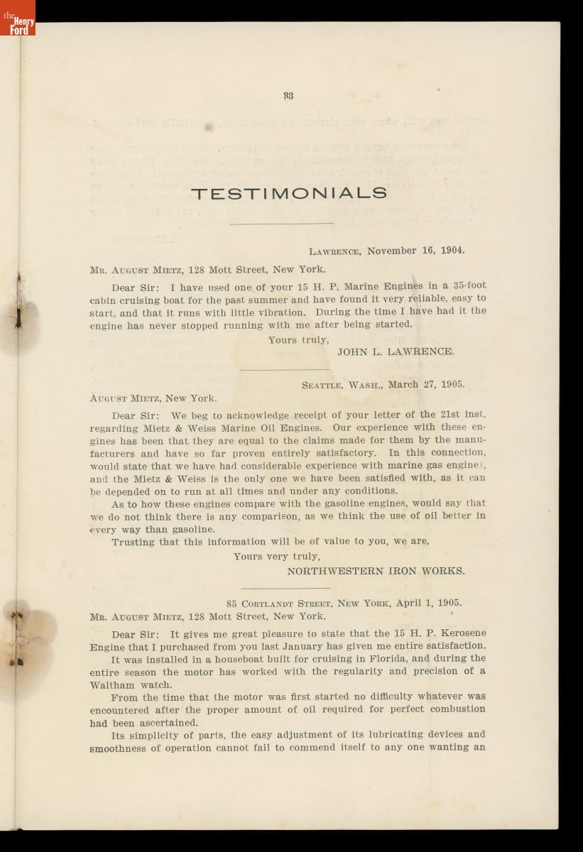 The Mietz & Weiss Marine Oil Engines, 1905