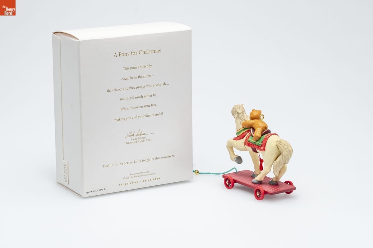 A Pony for Christmas / This pony and teddy / could be in the circus-- / they dance and they prance with such style... / But they'd much rather be / right at home on your tree, / making you and your family smile! / Linda Sickman / Hallmark Keepsake Artist / Twelfth in the Series. Look for 12 on this ornament. / For decorative use only. / Concu a des fins decoratives seulement. / handcrafted - dated 2009