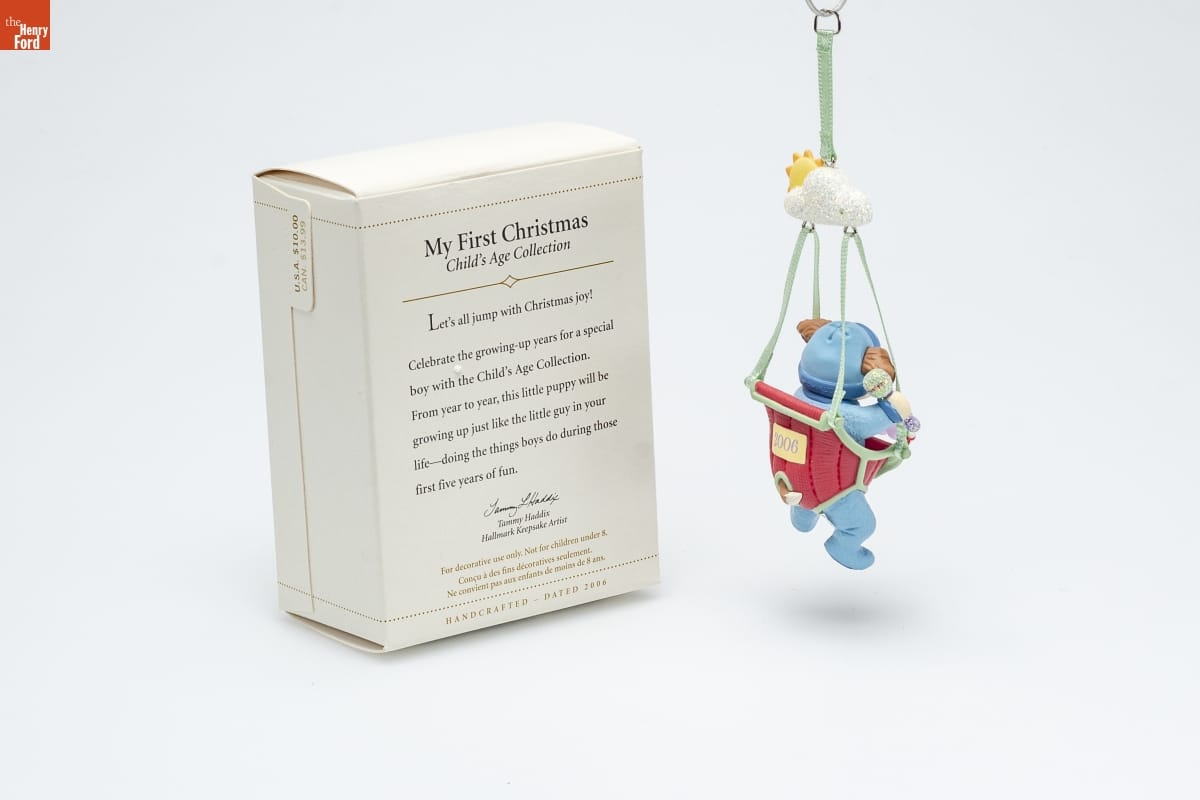 Already known for greeting cards, Hallmark introduced a line of Christmas ornaments in 1973. The company's annual release of an increasing array of ornaments appealed to customers' interest in marking memories and milestones as well as expressing one's personality and unique tastes. Purchasing an ornament like this one would bring back happy family memories of that event year after year.