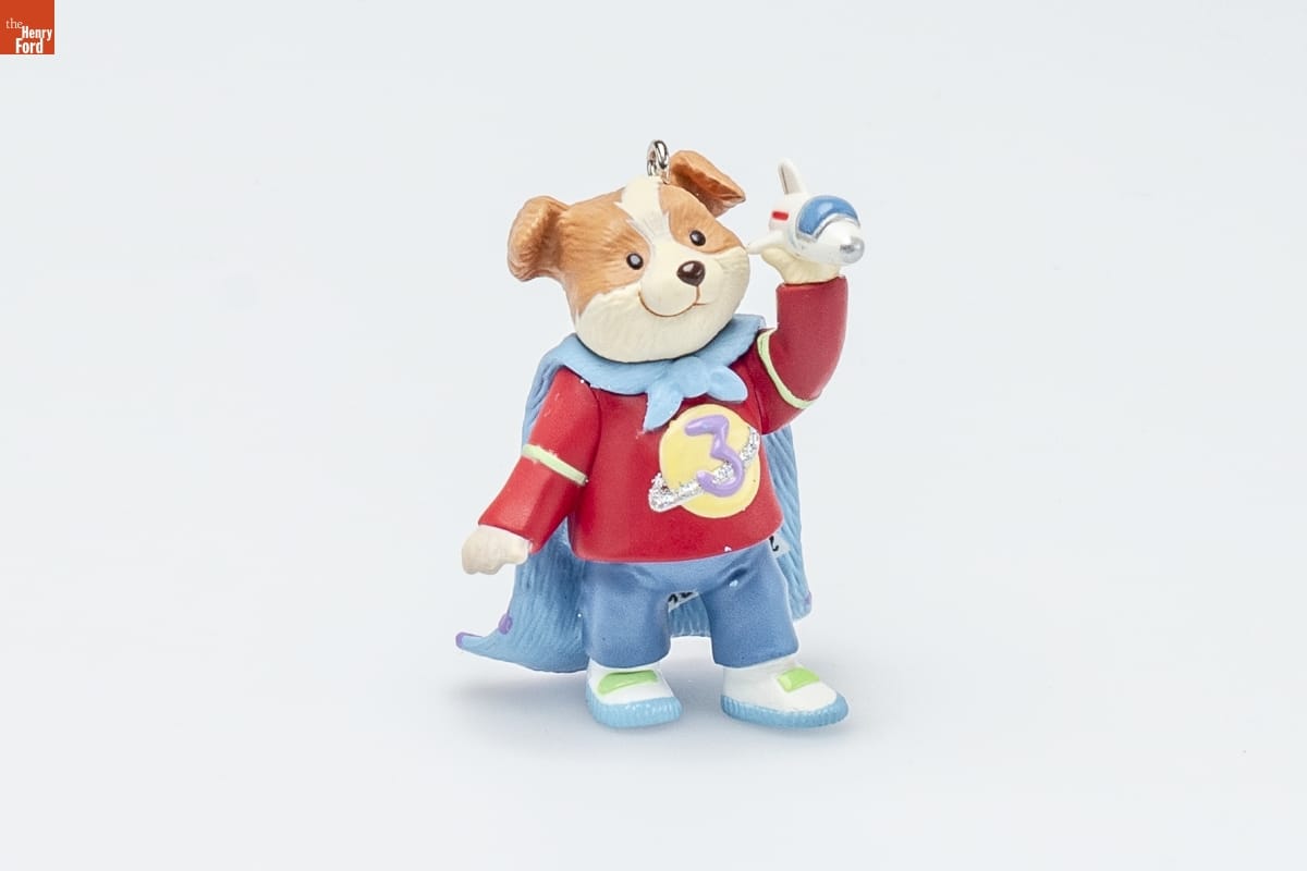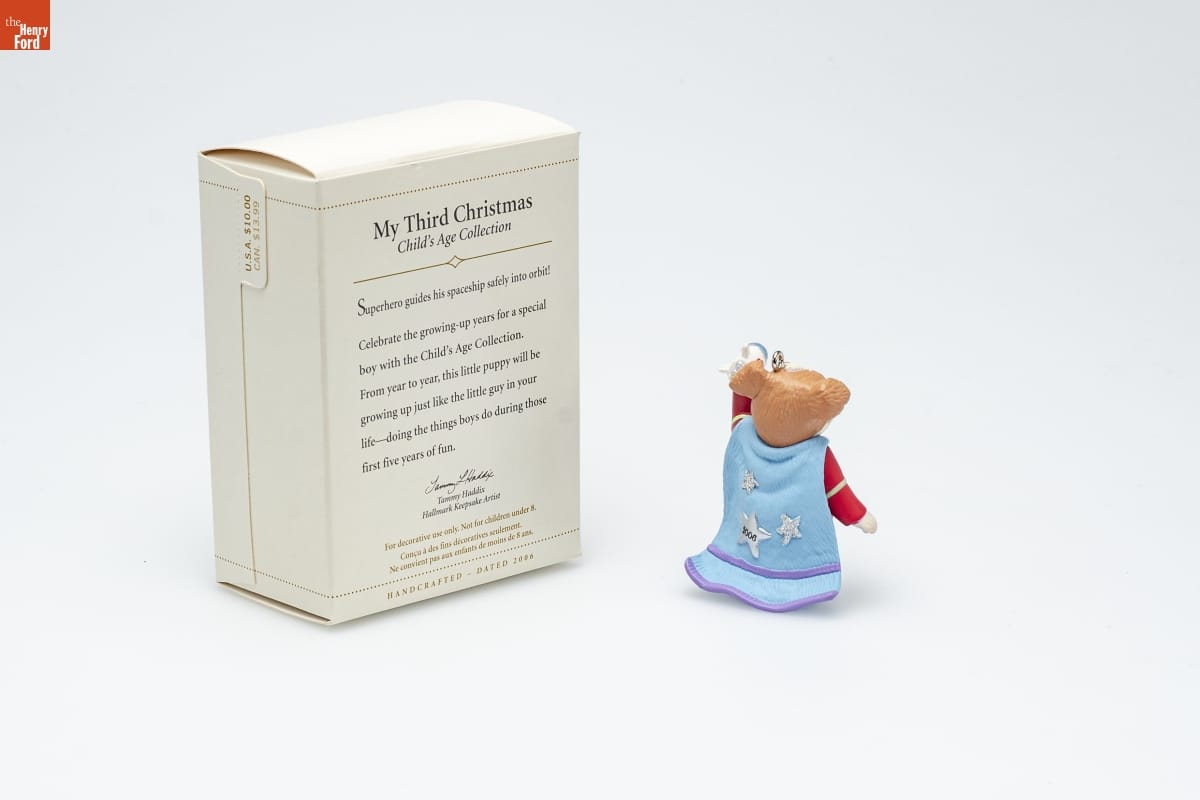 My Third Christmas / Child's Age Collection / Superhero guides his spaceship safely into orbit! / Celebrate the growing-up years for a special / boy with the Child's Age Collection. / From year to year, this little puppy will be / growing up just like the little guy in your / life--doing the things boys do during those / first five years of fun. / Tammy Haddix / Hallmark Keepsake Artist / For decorative use only. Not for children under 8. / Concu a des fins decoratives seulement. / Ne convient pas aux enfants de moins de 8 ans. / HANDCRAFTED - DATED 2006