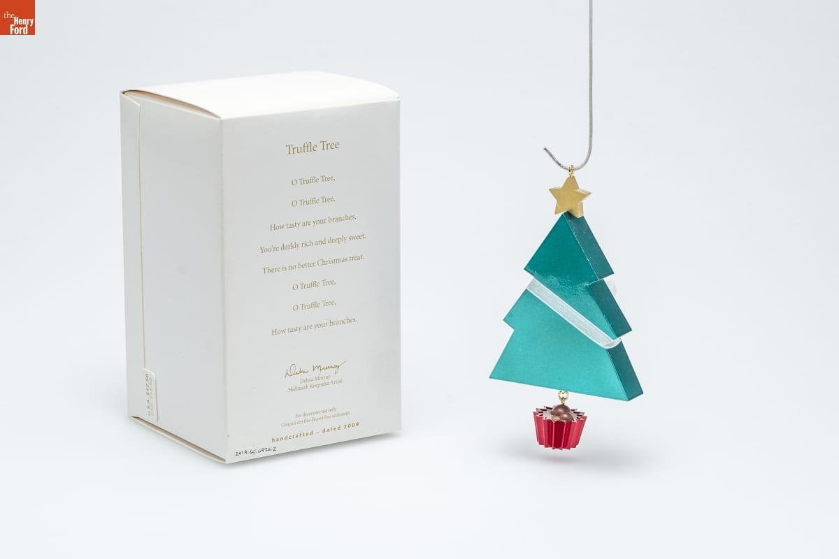 Truffle Tree / O Truffle Tree, / O Truffle Tree, / How tasty are your branches. / You're darkly rich and deeply sweet. / There is no better Christmas treat. / O Truffle Tree, / O Truffle Tree, / How tasty are your branches. / Debra Murray / Hallmark Keepsake Artist / For decorative use only. / Concu a des fins decoratives seulement. / handcrafted - dated 2009