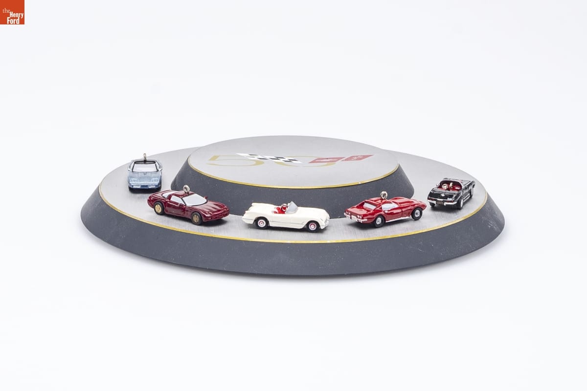 Hallmark "Corvette's 50th Anniversary: Join the Caravan!" Miniature Christmas Ornaments and Display Stand, 2003