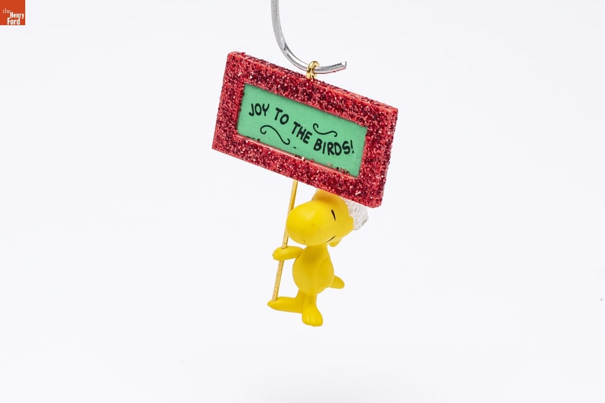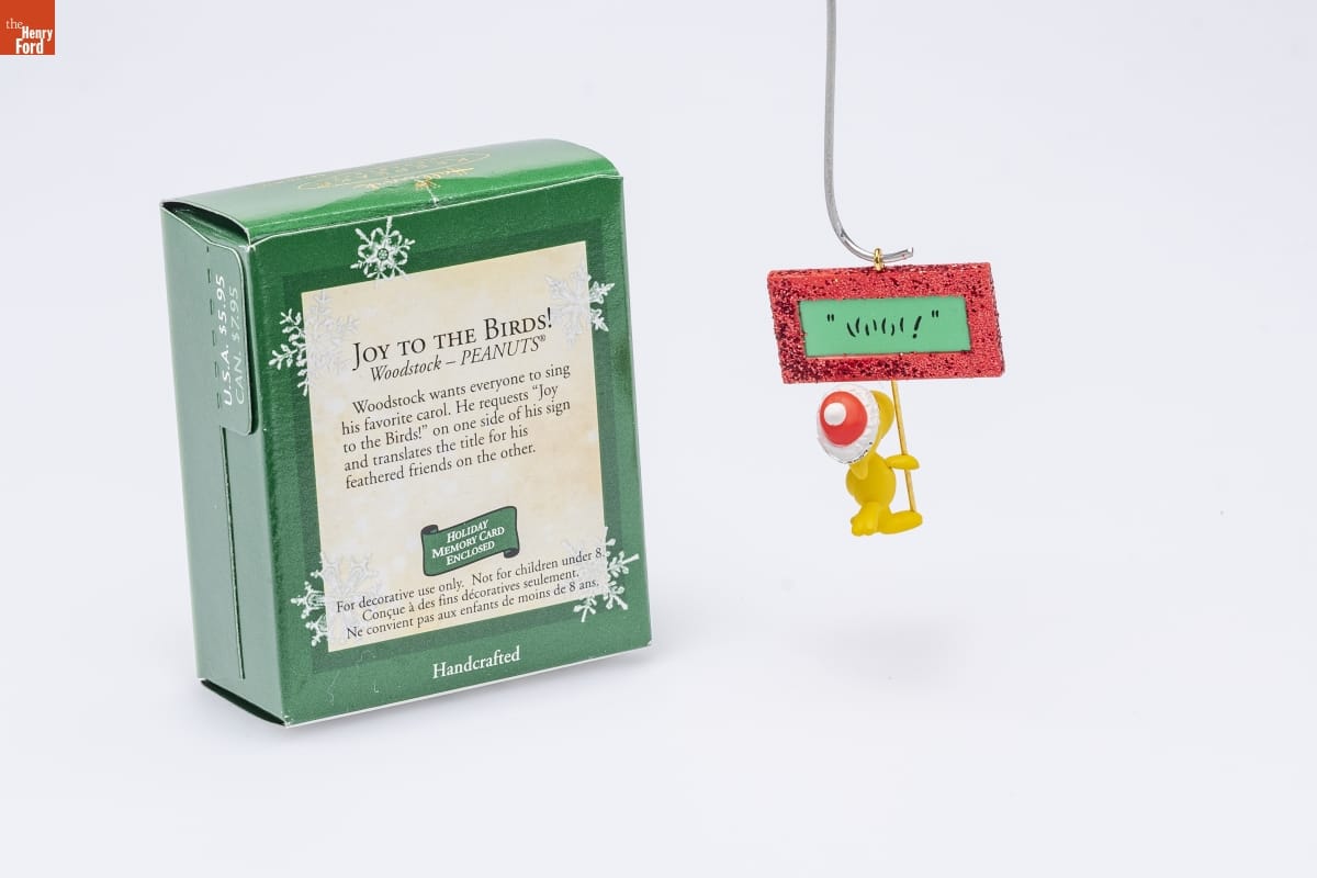 JOY TO THE BIRDS! / Woodstock - PEANUTS(R) / Woodstock wants everyone to sing / his favorite carol. He requests "Joy / to the Birds!" on one side of his sign / and translates the title for his / feathered friends on the other. / HOLIDAY / MEMORY CARD / ENCLOSED / For decorative use only. Not for children under 8. / Concue a des fins decoratives seulement. / Ne convient pas aux enfants de moins de 8 ans. / Handcrafted