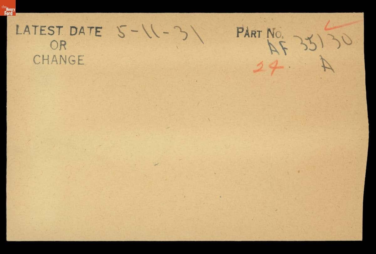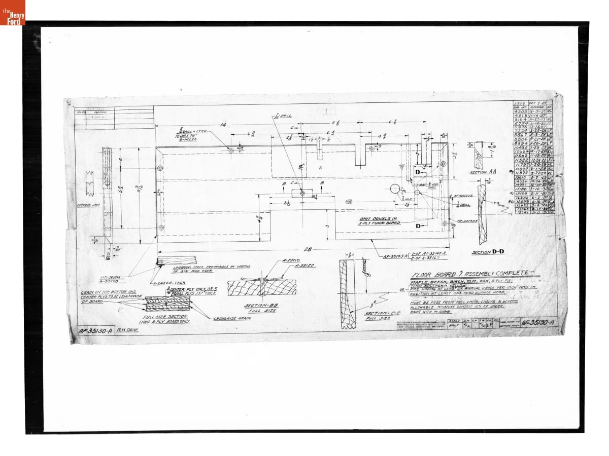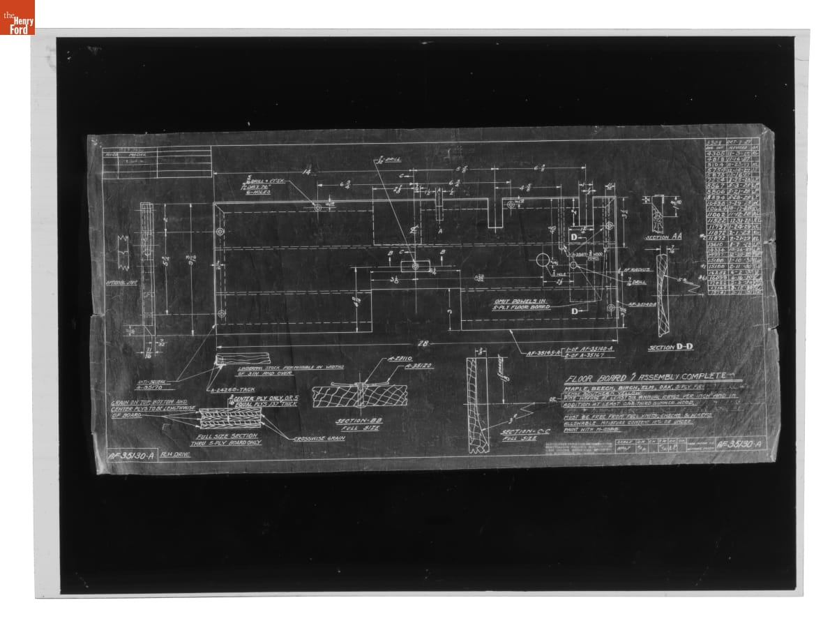 The Ford Motor Company created over a million parts drawings from 1903 to 1957. Many of these drawings specify engineering requirements for the components of Ford-made vehicles--including automobiles, trucks, tractors, military vehicles and Tri-motor airplanes. Others document assembly components, stages of casting and forging, or experimental designs. Beginning in the 1940s, Ford transferred the drawings to microfilm.