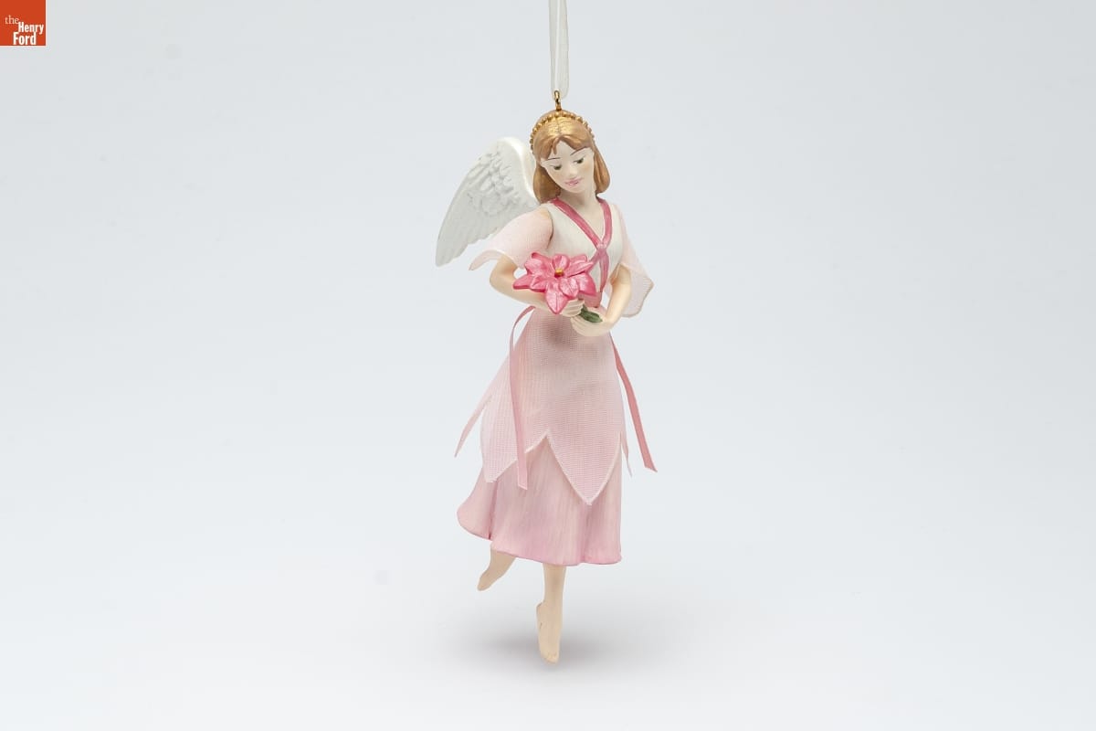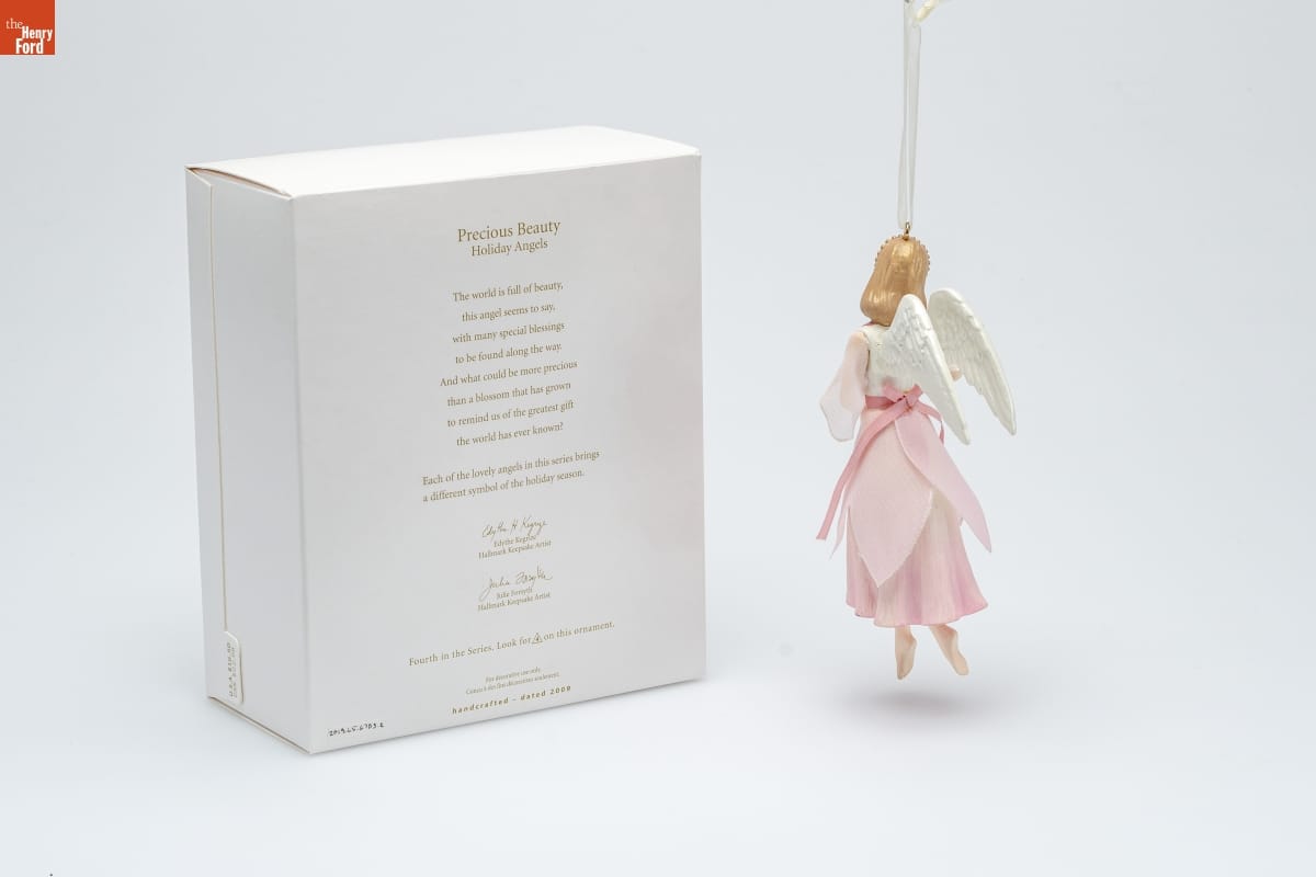 Precious Beauty / Holiday Angels / The world is full of beauty, / this angel seems to say, / with many special blessings / to be found along the way. / And what could be more precious / than a blossom that has grown / to remind us of the greatest gift / the world has ever known? / Each of the lovely angels in this series brings / a different symbol of the holiday season. / Edythe Kegrize / Hallmark Keepsake Artist / Julie Forsyth / Hallmark Keepsake Artist / Fourth in the Series. Look for 4 on this ornament. / For decorative use only. / Concu a des fins decoratives seulement. / handcrafted - dated 2009