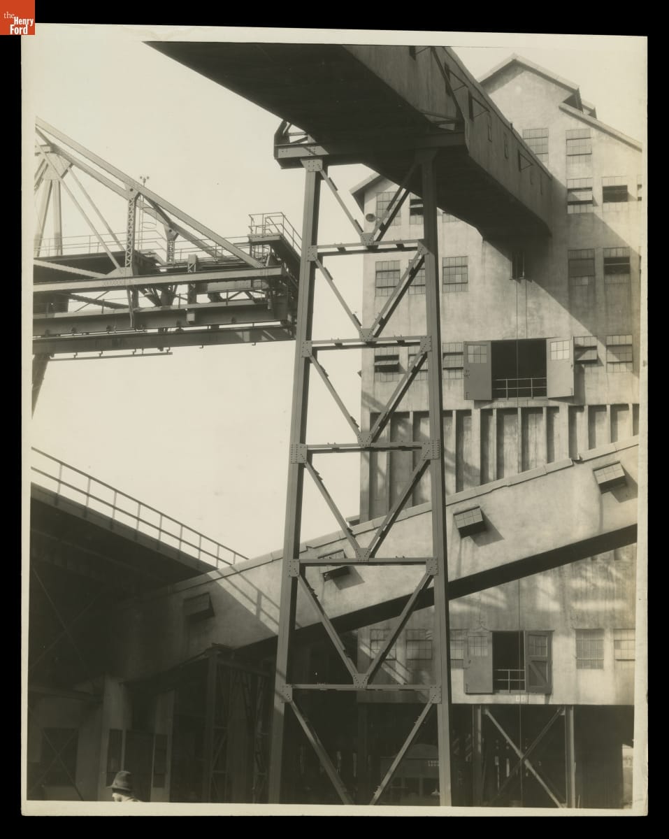 In 1927, Ford Motor Company commissioned Charles Sheeler to make a series of documentary photographs of its Rouge plant near Dearborn, Michigan. This photo shows the building where coal was pulverized into an appropriate consistency for the plant's coke ovens. High-carbon coke, made from the pulverized coal, was used in making iron in Ford's blast furnaces.