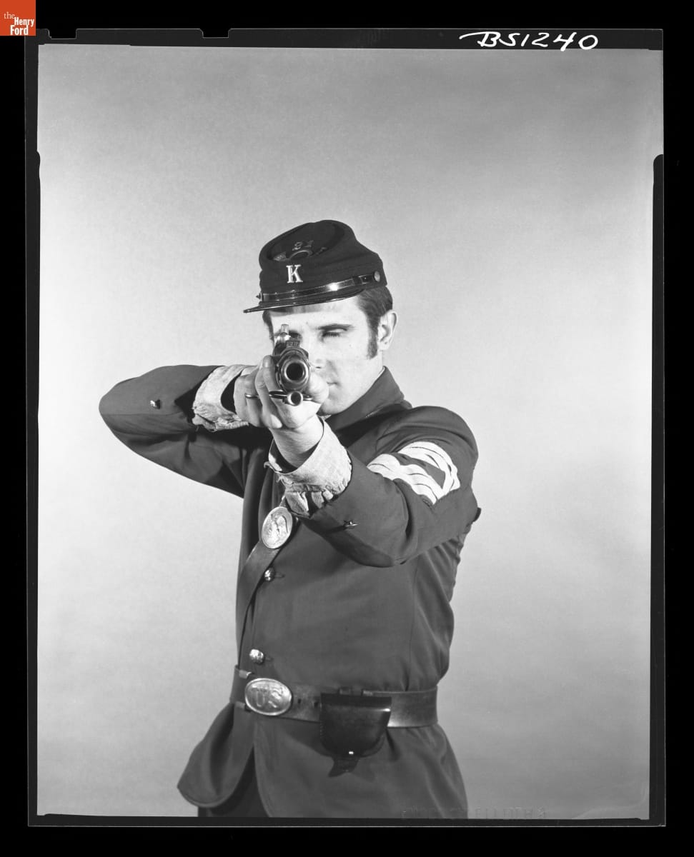 Rudy Ruzicska Posing for Muzzle Loaders Festival Promotional Materials, 1969