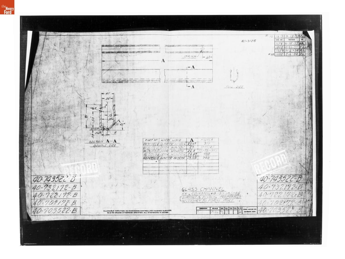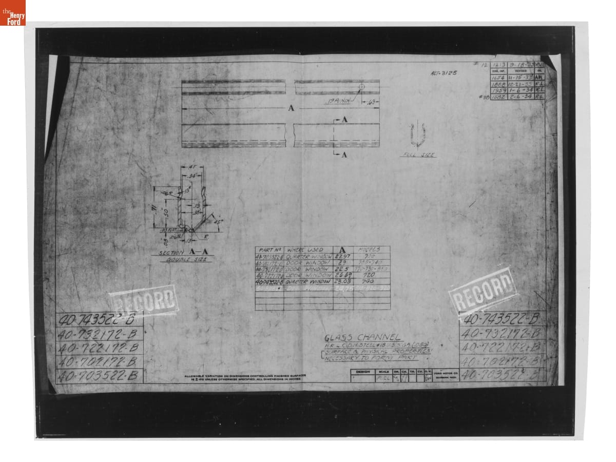 Drawing, "Glass Channel," Ford Automobile, February 6, 1934