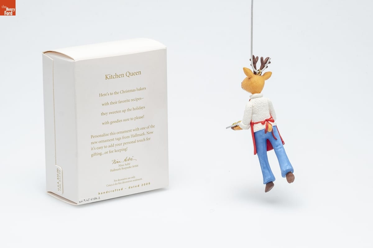 Kitchen Queen / Here's to the Christmas bakers / with their favorite recipes-- / they sweeten up the holidays / with goodies sure to please! / Personalize this ornament with one of the / new ornament tags from Hallmark. Now / it's easy to add your personal touch for / gifting...or for keeping! / Nina Aube / Hallmark Keepsake Artist / For decorative use only. / Concu a des fins decoratives seulement. / handcrafted - dated 2009