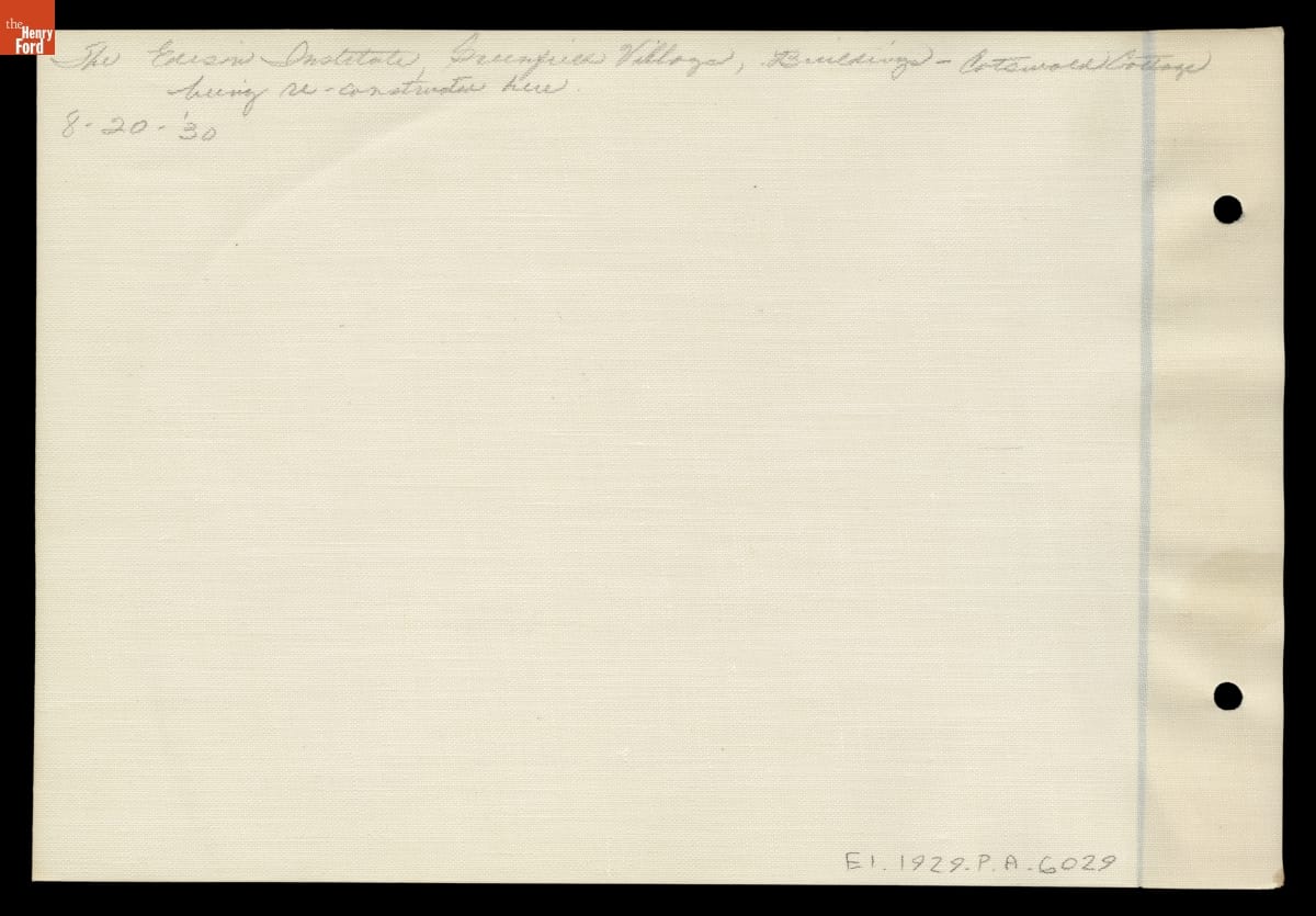 Henry Ford was attracted to the distinctive character of buildings from the Cotswold region of southwest England. Yellow-brown stone, tall gables, steeply pitched roofs, and stone ornamentation around windows and doors typify the local architectural features. Ford purchased one of the region's cottages, then had it dismantled and shipped to Greenfield Village, where it was reassembled in 1930.